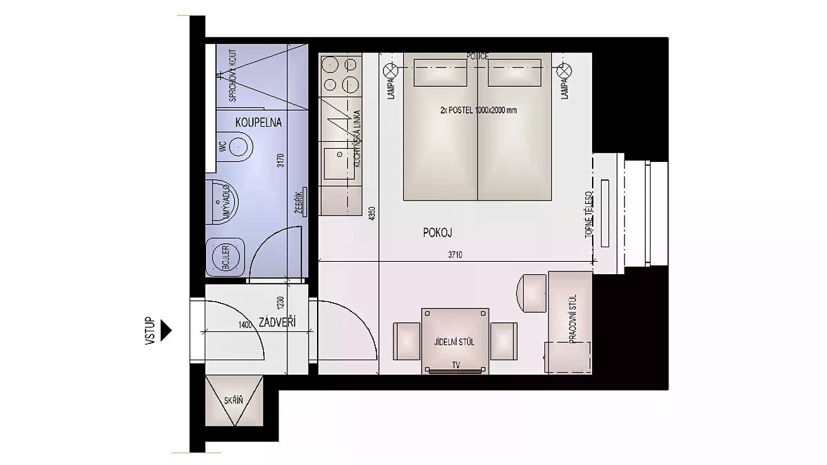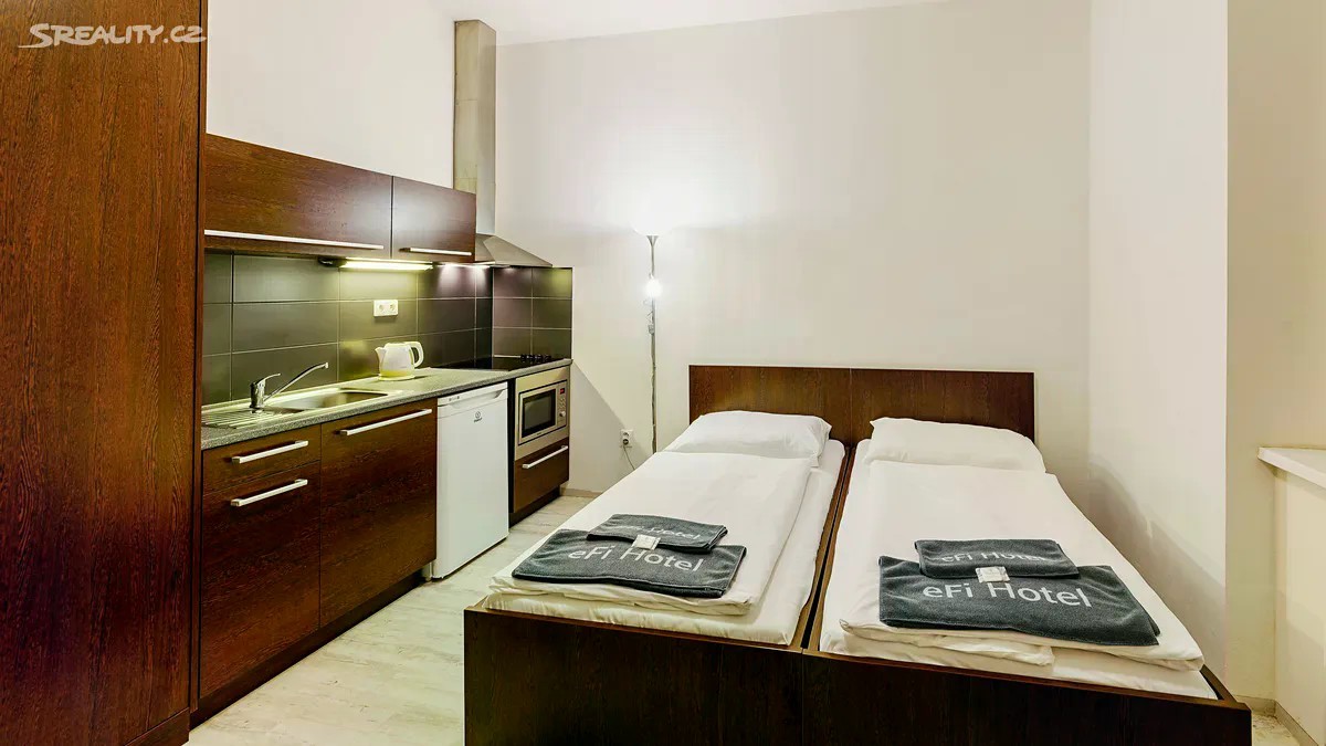 Investiční příležitost bez starostí. Prodej investičního bytu 1+kk v osobním vlastnictví v prvním patře víceúčelové budovy v blízkosti centra Brna. Byt je pronajat na dobu 3 let společnosti eFi Palace, s.r.o. (stávající vlastník, možnost prodloužení) s garantovaným nájemným 13 tisíc Kč měsíčně (156 tisíc Kč ročně). Celková výměra bytu je 23,53 m2. Předsíně 2,26 m2, koupelna 4,44 m2, pokoj s kuchyňským koutem 16,83 m2. Okna jsou situovány na severní stranu do ulice Bratislavská. V budoucnu bude možnost Vybavení bytu tvoří kuchyňský kout s kuchyňskou linkou v barvě Wenge a pracovní deskou Egger v barvě Jura černá se sklokeramickou varnou deskou Indesit VRM 640 MC se čtyřmi varnými zónami, komínový odsavač Elica Missy 60/IX, vestavěná mikrovlná trouba Baumatic BMC253SS s grilem a horkovzdušnou troubou, podstavná lednice indesit TFAA 10. V předsíni je vestavěná skříň. Koupelna se sprchovým koutem 90 x 90 cm, umyvadlem a WC, koupelnová skříňka LeBon, barva Wenge. Topení ústřední s radiátory, ohřev teplé vody elektrickým inteligentním ohřívačem OKHE SMART se zásobníkem teplé vody. Bytová okna jsou s izolačními trojskly.