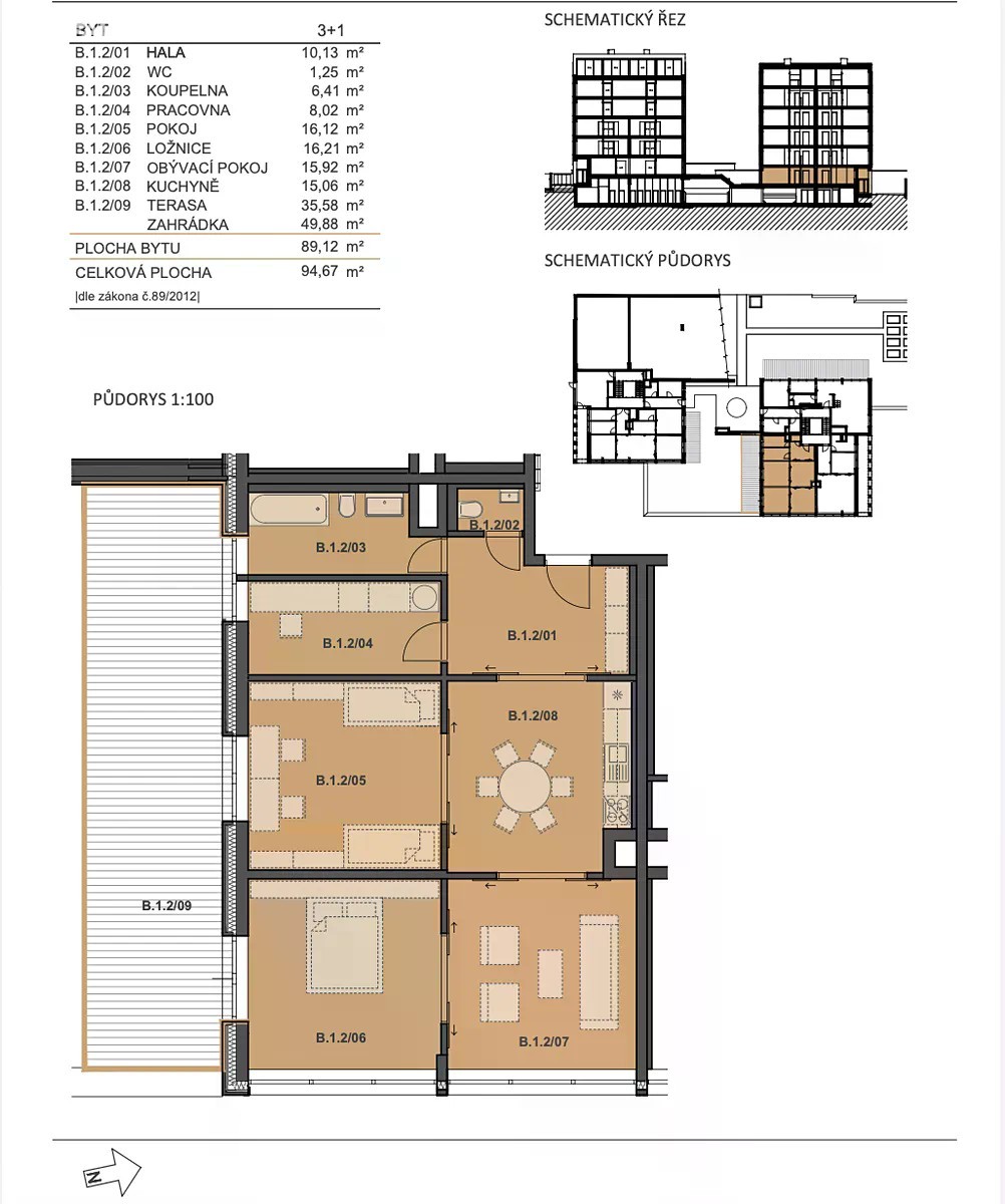 Nabízíme k prodeji moderní novostavbu prostorného bytu 3+1 o celkové výměře 94 m², který se nachází ve zvýšeném 1. nadzemním podlaží nového bytového domu na ulici Horní v Brně. K bytu náleží velká terasa a soukromá zahrádka, které poskytují jedinečné místo pro odpočinek, relaxaci nebo posezení s přáteli. Tato nemovitost představuje ideální volbu pro ty, kteří hledají komfortní bydlení v klidné části města, přitom s výbornou dostupností do centra Brna. Dispozice bytu je navržena s důrazem na funkčnost a pohodlí. Dominantou interiéru je světlý obývací pokoj s velkými okny. Terasa i přilehlá zahrádka tvoří soukromý prostor, kde si můžete užívat klidné chvíle po práci, ranní kávu i letní večery s rodinou. Samostatná kuchyň nabízí dostatek prostoru pro plně vybavenou moderní linku a jídelní kout. Byt dále disponuje dvěma samostatnými pokoji, šatnou, koupelnou s vanou a oddělenou toaletou. Při výstavbě byly použity kvalitní materiály, které podtrhují moderní charakter bytu - vinylové podlahy, kvalitní obklady, sanita vyšší třídy a hliníková okna s trojskly zajišťující dokonalé odhlučnění. Samozřejmostí je podlahové vytápění a energeticky úsporné řešení celé stavby, které přináší nízké provozní náklady. Ulice Horní patří mezi vyhledávané rezidenční lokality Brna, které spojují klidné prostředí s výbornou dopravní dostupností. V okolí se nachází kompletní občanská vybavenost - obchody, školy, školky, restaurace, zdravotnická zařízení i zastávky MHD. Díky blízkosti zelených ploch, jako je Kamenný vrch či Červený kopec, je lokalita ideální pro milovníky přírody a aktivního odpočinku. K bytu náleží sklepní koje. Dále je možné dokoupit dvě garážová stání v 1.pp domu. Dům je navržen s důrazem na bezpečnost, kvalitu a dlouhodobou úspornost. Byt je ihned k nastěhování a svou dispozicí i atmosférou nabízí ideální kompromis mezi komfortem městského bytu a soukromím rodinného domu. Tento byt představuje výjimečnou příležitost pro ty, kteří hledají kvalitní, moderní a klidné bydlení s přímým kontaktem s přírodou, a přitom chtějí zůstat v dosahu centra Brna.