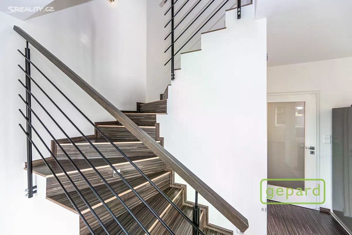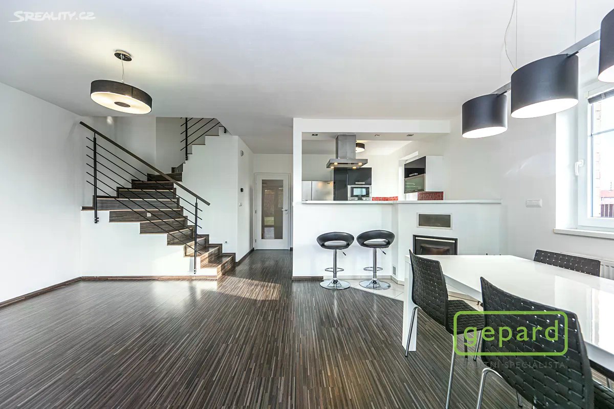 Společnost Gepard Reality nabízí k dlouhodobému pronájmu prostorný rodinný dům 5+kk v klidné části Prahy 10 - Hájek u Uhříněvsi. Jedná se o krajní dům v zástavbě rodinných domů hned vedle cyklostezky v naprostém klidu a s výbornou dopravní dostupností autem i MHD. Celková plocha domu je zhruba 164 m2, z čehož terasa činí 15 m2 a vytápěná garáž pro 1 vůz 16,25 m2. Celková plocha pozemku je 376 m2. Před domem jsou další 2 parkovací stání. V přízemí je předsíň (6,61 m2), spíž (2,61 m2), koupelna se sprchovým koutem a WC (4,38 m2) a prostorný obývací pokoj s krbem a s přilehlou pracovnou (36,85 m2) + kuchyňský kout (6,44 m2). Kuchyně je vybavená kuchyňskou linkou včetně spotřebičů (velká americká lednice, horkovzdušná trouba, indukční varná deska, myčka, digestoř). Z obývacího pokoje je přímý vstup na terasu a do zahrady. V prvním patře je chodba (4,95 m2), koupelna s vanou a WC (8,06 m2) a 3 ložnice (11,23, 12,68 a 30,46 m2) Dvě z ložnic mají přístup na balkon. Dům je pronajímán bez dalšího vybavení. Vytápění a ohřev vody zajišťuje plynový kondenzační kotel, pro navození příjemné atmosféry nebo snížení nákladů na topení lze využít krb. Hájek u Uhříněvsi je klidnou městskou částí tvořenou výhradně rezidenčním bydlením, obklopenou přírodou s možností pěších výletů nebo výletů na kole po místních cyklostezkách. Je zde dobrá dostupnost autem i autobusem. Autobusové spojení do Uhříněvsi nebo na nejbližší stanici metra A - Depo Hostivař. Veškerá občanská vybavenost je v Uhříněvsi, která je vzdálená 10 minut autem nebo 15 minut autobusem. Obchodní centrum Europark je vzdálené 13 minut autem. Dům je volný ihned k nastěhování. Nájemné ve výši 40.000,- Kč, vratná kauce 80.000,-. Kč, náklady na provoz domu činí 6.000,- Kč měsíčně, provize RK 40.000,- Kč. Energetický štítek zatím nebyl dodán. Majitel si vyhrazuje právo vybrat nájemce na základě jím zvolených kritérií.