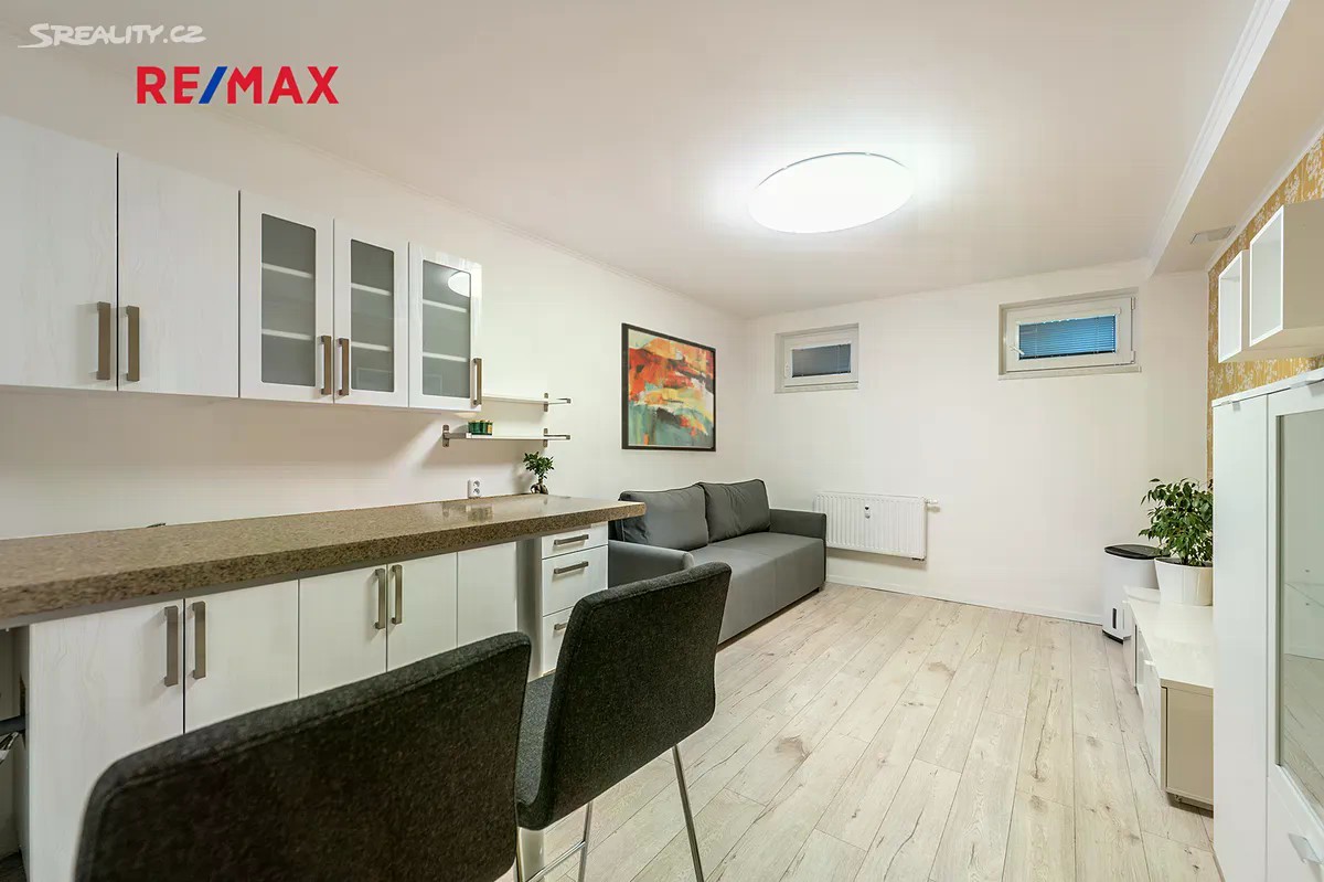 Útulný byt o dispozici 1+kk a rozloze 21 m2 (+ sklep), nacházející se v polosuterénním podlaží novostavby cihlového a zatepleného bytového domu, jenž stojí ve velmi tichém a klidném místě, na adrese U věže 2011, Praha 9 - Horní Počernice. V obytném pokoji se nachází kuchyňská linka (lednice, elektrický vařič, možno dodat mikrovlnnou troubu), rozkládací sedačka (šířka lůžka: 140 cm), jídelní sezení a skříně dle fotografií. V koupelně sprchový kout, WC, umyvadlo, elektrický topný žebřík. V oknech bytu jsou nainstalovány žaluzie a sítě proti hmyzu, vstupní dveře jsou bezpečnostní. V domě je rozvedeno připojení k internetu. Byt se nabízí včetně vybavení, které je zobrazeno na fotografiích, a je připraven k okamžitému nastěhování. K bytu patří sklepní kóje umístěná přede dveřmi do bytu. V bytě není pračka. Nízké měsíční náklady na bydlení: poplatky pro jednu osobu cca 1000 Kč měsíčně + záloha na elektřinu (elektroměr bude převeden na nájemce). V zálohách není zahrnuta platba za internetové připojení, které si zřizuje nájemce sám. Kauce: 24.000 Kč. Provize RK: 6.000 Kč + DPH = 7.260 Kč. V pěší dostupnosti je autobusová zastávka Třebešovská (busem 4 min na Nádraží Horní Počernice, odtud 14 min vlakem do centra Prahy na Hlavní nádraží; nebo busem 9 min na =M= Černý Most), supermarket Lidl, cyklostezka do Klánovického lesa. V městské části Praha - Horní Počernice se nachází veškerá občanská vybavenost - obchody, supermarkety, restaurace, služby, blízkost Obchodního centra Černý Most a přírody. K nastěhování ihned. Nájemní smlouva požadována min. na dobu 1 roku. Pronajímatel preferuje 1 osobu. Pronajímatel si vyhrazuje právo vybrat nájemce na základě jím zvolených kritérií.