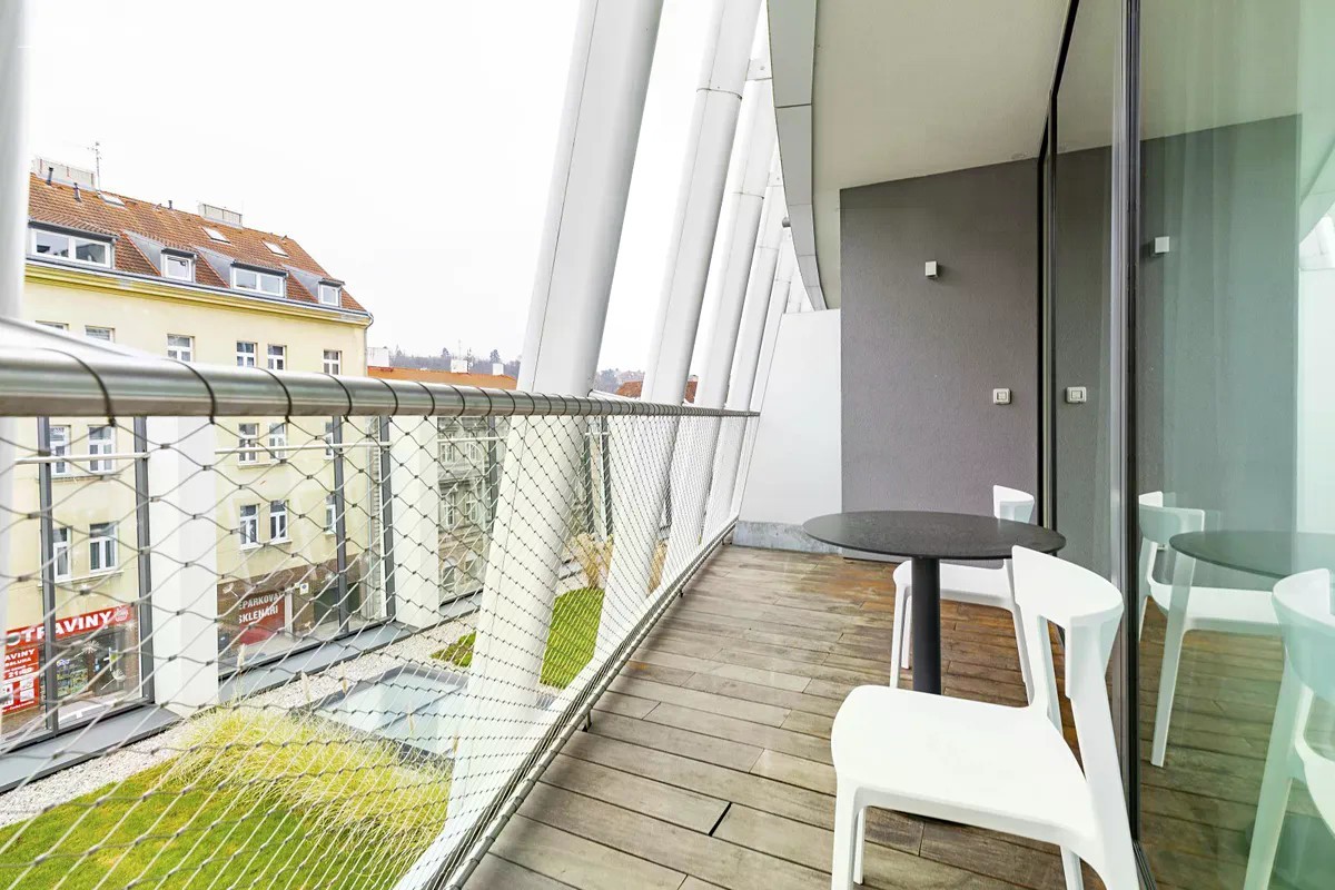 Nabízíme k pronájmu luxusní, klimatizovaný byt 2+kk s terasou ve 2. patře novostavby Rezidence Ellipsis s 24/7 recepcí, výtahem, podzemní garáží, wellness - bazén, sauna, a rozlehlou zahradou s parkovou úpravou v lokalitě Praha 5 - Smíchov s výborným spojením do centra, do nákupního centra Nový Smíchov, do Německé a Francouzské školy. Zařízený byt o velikosti 73,64 m2 nabízí vstupní halu, prostorný obývací pokoj otevřený s jídelnou a plně vybavenou kuchyní a se vstupem na terasu o velikosti 14,28 m2, ložnici, koupelnu s vanou, sprchovým koutem, bidetem a toaletou. Kvalitní materiály, dřevěné podlahy, velkoformátová dlažba, francouzská okna, bezpečnostní dveře, internet, A/C, sklep. Možnost nájmu garážové stání za poplatek 200 EUR +21%DPH/měsíc. Oblíbená lokalita Praha 5 - Smíchov s dobrým dopravním spojením, v pěší vzdálenosti na stanici metra a tramvaje Anděl, do parku Petřínské sady. Nájem 2.200 EUR + 12% DPH splatný v EUR + členský poplatek za využití wellness 100 EUR/měsíc. Nájem zahrnuje spotřebu energií, internet a 2x měsíčně úklid. V přízemí budovy se rovněž nachází fitness centrum Prisma Institut. Byt je určen ke střednědobému pronájmu, minimální doba ubytování je jeden měsíc.