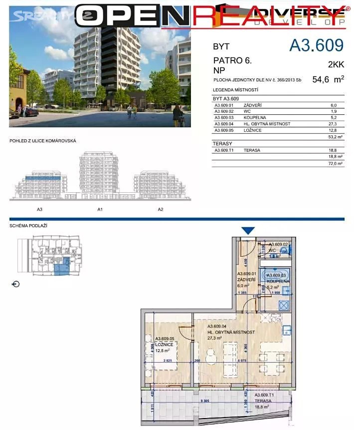 Hledáte reprezentativní bydlení v atraktivní lokalitě s dechberoucím výhledem na dominanty Brna? Pak právě pro vás je připraven tento byt 2+kk o ploše 54,6 m s prostornou terasou (18,8 m), který se nachází v 6. nadzemním podlaží novostavby Allrisk MERIDIEM na rozhraní ulic Svatopetrská a Komárovská. Dispozice bytu: - hlavní obytná místnost s kuchyňským koutem (27,3 m) - ložnice (12,8 m) - chodba (6 m) - koupelna (5,2 m) - samostatné WC (1,9 m) Výhody bytu: - novostavba s vysokým standardem provedení - samostatná koupelna a WC - terasa s výjimečným výhledem na Brno - sklep - parkovací místo v suteréně Vybavení: - klimatizace - venkovní elektricky ovládané žaluzie - velkoformátové obklady a dlažba v koupelně i na toaletě - chodba bude mít šatní skříň - Kuchyň bude vybavená kuchyňskou linkou se spotřebiči + jídelní stůl a židle - obývací část bude zařízená pohovkou, konferenčním stolíkem, komodou a připravou pro TV - Ložnice bude mít skříň a postel bez matrací Platby: - Nájemné 33.000 Kč/měsíc - Energie 5.500 Kč/měsic - Kauce 66.000 Kč/měsíc - Provize 33.000 Kč K nastěhování od 1.11.2025. Lokalita: - výborná dostupnost MHD, ve Vaňkovce a v centru Brna jste za pár minut - v okolí sportovní a rekreační možnosti: cyklostezka, biotop, sportovní centrum, parky - kompletní občanská vybavenost v docházkové vzdálenosti Tento byt nabízí moderní, komfortní a reprezentativní bydlení, ideální pro ty, kdo chtějí spojit klid s výhodami života v těsné blízkosti centra.