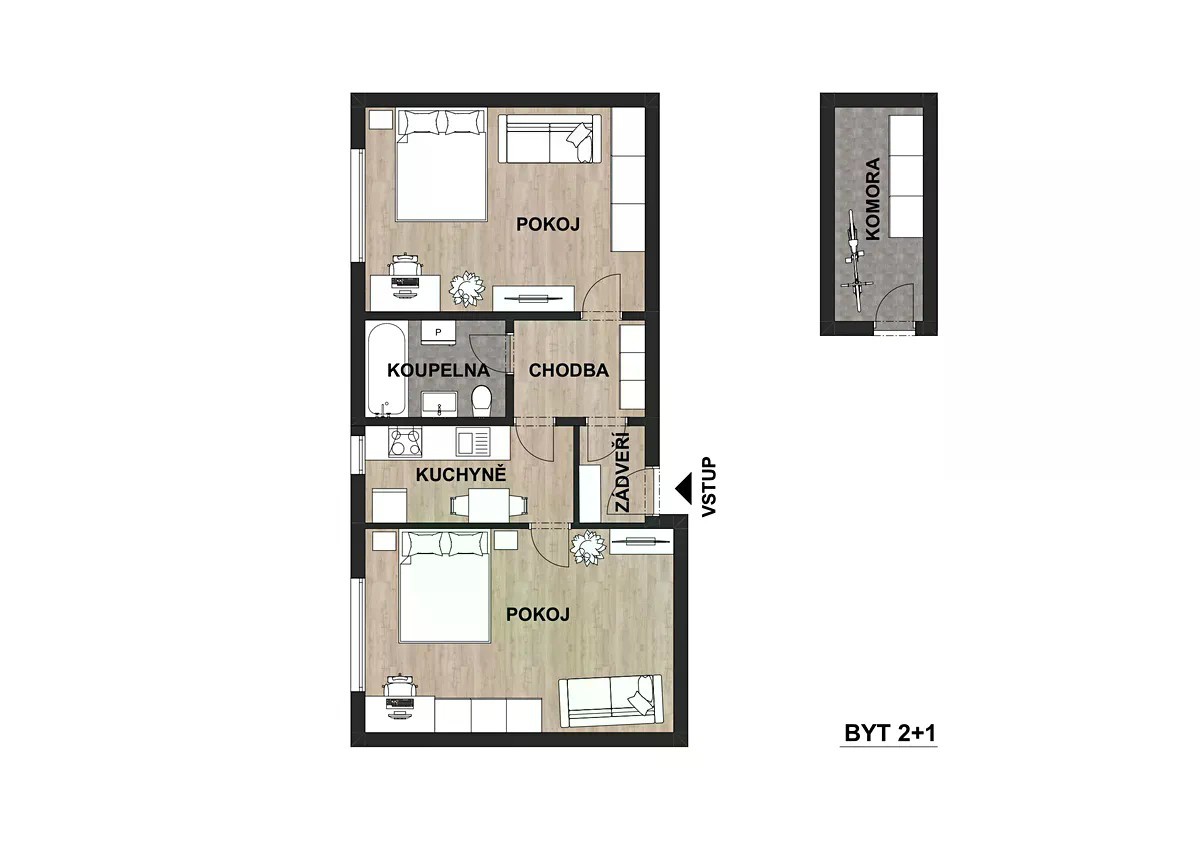 Nabízíme k prodeji světlý a prakticky řešený cihlový byt s ideální dispozicí 2+1 o celkové ploše 58,4 m² v osobním vlastnictví. Byt se nachází ve 3. nadzemním podlaží polyfunkčního pětipodlažního domu z roku 2007 v žádané lokalitě ulice Masná přímo v centru Brna, pouhé dvě zastávky od historického centra města. V domě je k dispozici výtah do 2. nadzemního podlaží. Byt je situován na chodbě společné pouze pro dva byty, přístup přes uzamykatelné dveře mají pouze majitelé, což zajišťuje maximální soukromí a bezpečí. Dispozice bytu je účelná a příjemná. Okna orientovaná na východ do klidného vnitrobloku poskytují dostatek světla i soukromí. Dva samostatné neprůchozí pokoje umožňují variabilní využití a zajišťují komfortní bydlení. Menší vybavená kuchyň, koupelna s vanou a toaletou doplněná o elektrický topný žebřík a prostorná předsíň dokončují funkční uspořádání bytu. Vytápění je dálkové a stav bytu umožňuje okamžité nastěhování. Součástí bytu je také prostorná zděná komora na stejném patře, poskytující praktický úložný prostor. Parkování je možné na velkém veřejném parkovišti v blízkosti domu. Lokalita nabízí vše, co moderní městský život vyžaduje - skvělou dostupnost MHD s tramvajovými, autobusovými i trolejbusovými zastávkami přímo u domu a pěší dostupnost na Hlavní nádraží, obchodní centrum Vaňkovka i historické centrum Brna. V okolí najdete obchody, restaurace, kavárny, kina, divadla, sportoviště i prémiové kanceláře Vlněna. Kompletní občanská vybavenost a atraktivní adresa činí z této nemovitosti velmi žádané místo k bydlení i investici. Nemovitost spolu s atraktivní lokalitou představuje ideální volbu jak pro vlastní pohodlné bydlení, tak i jako zajímavou investiční příležitost k pronájmu. V případě zájmu nás neváhejte kontaktovat. Rádi vám poskytneme více informací nebo domluvíme prohlídku.