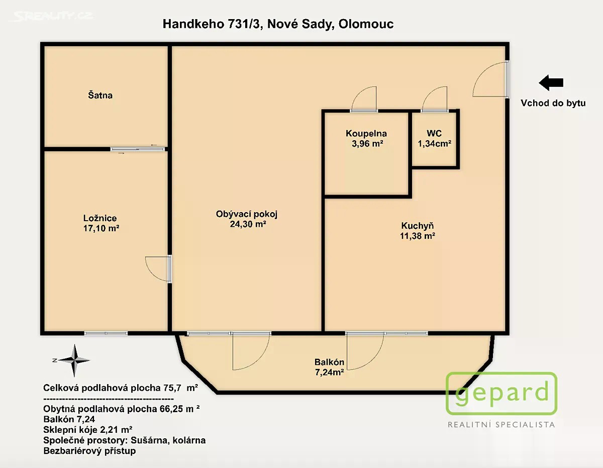 Nabízíme k prodeji prostorný byt o dispozici 2+1 o celkové ploše 76 m², který se nachází v 8. patře cihlového domu v atraktivní lokalitě města Olomouc - Nové Sady, na ulici Handkeho. Byt tvoří předsíň s vestavěnou skříní, prostorná a vybavená kuchyně s jídelní částí (11,38 m²), obývací pokoj (24,30 m²), ložnice s oddělenou vestavěnou šatnou (17,10 m²), koupelna (3,96 m²), samostatné WC. Velkým benefitem bytu je terasa o velikosti 8 m², která poskytuje příjemné prostředí pro odpočinek nebo posezení. Součástí bytu je také sklepní kóje o výměře 2 m², vhodná pro uložení sezónních či méně potřebných věcí. Byt je v osobním vlastnictví a v dobrém, udržovaném stavu a není nutná rozsáhlá rekonstrukce. Elektrické rozvody jsou původní. Byt se nachází v cihlovém domě s výtahem. Dům je ve velmi dobrém stavu a nabízí klidné prostředí pro bydlení. Energetická náročnost budovy je ve třídě B, což zaručuje nízké provozní náklady. Lokalita zajišťuje výbornou dostupnost do centra města i ke kompletní občanské vybavenosti - v blízkosti se nachází zastávka MHD, školy, školky, obchody, zdravotnická zařízení i parky pro volnočasové aktivity. Byt je k dispozici ihned. V ceně jsou zahrnuty všechny poplatky za právní servis a provize RK. Zajišťujeme profesionální servis a nabídku financování nemovitosti. Kontaktujte makléře pro bližší informace a domluvte si svoji prohlídku, co nejdříve.