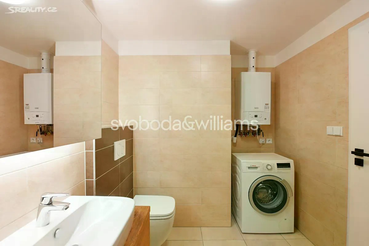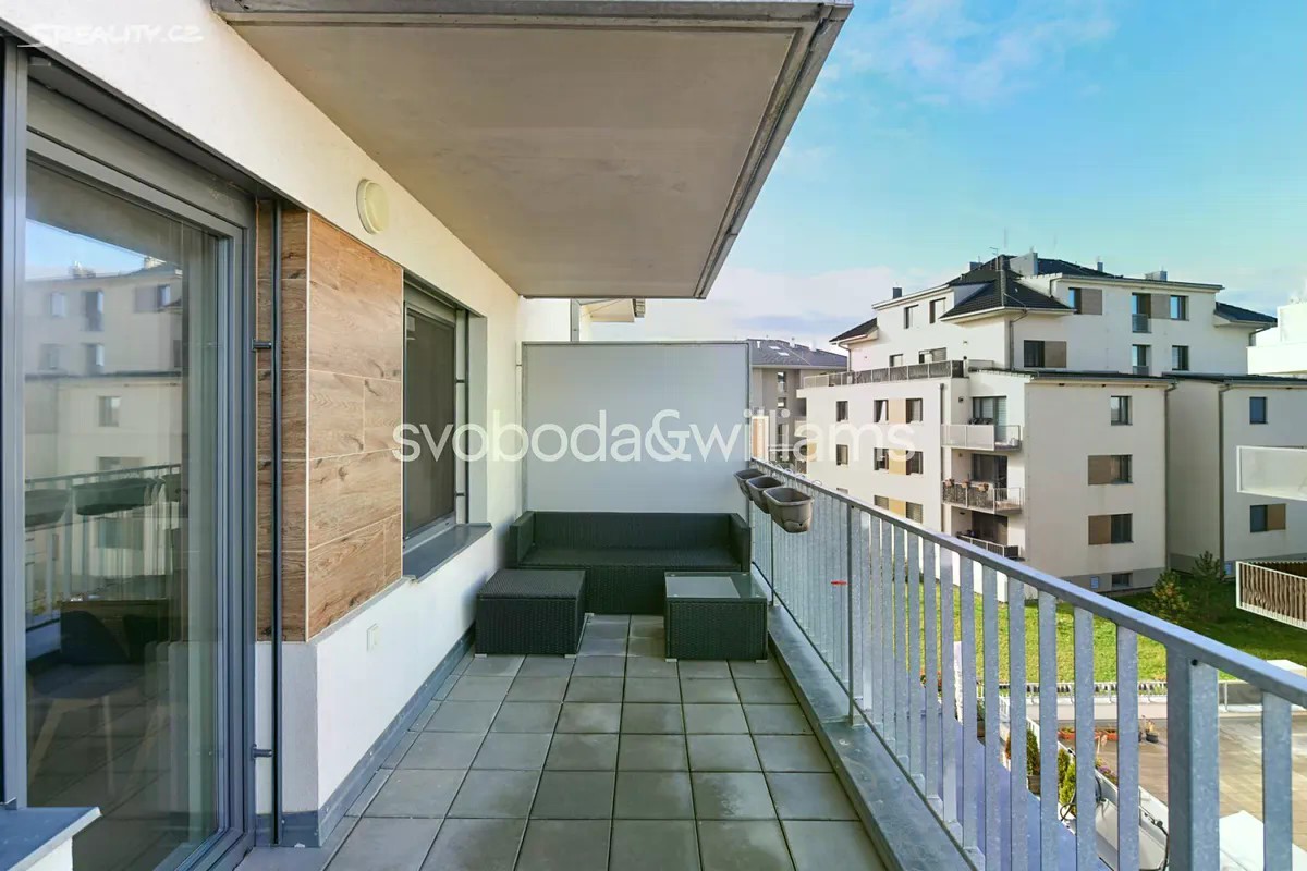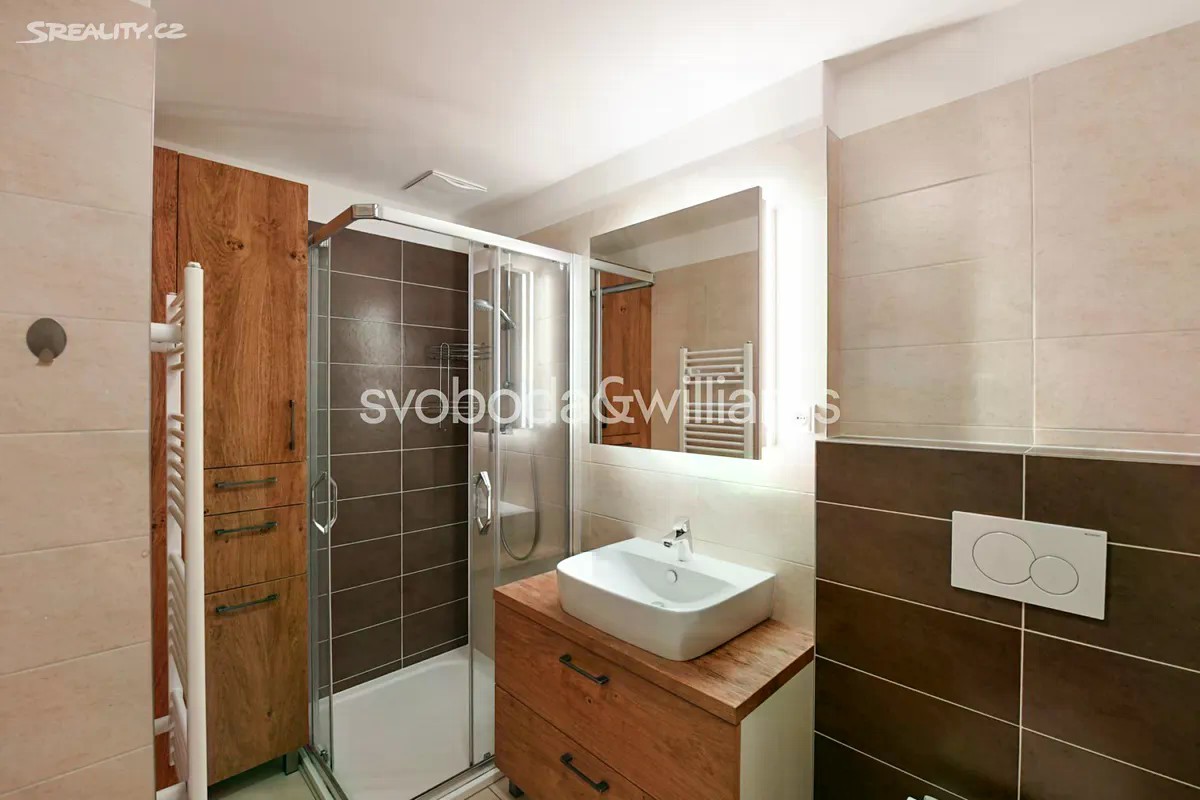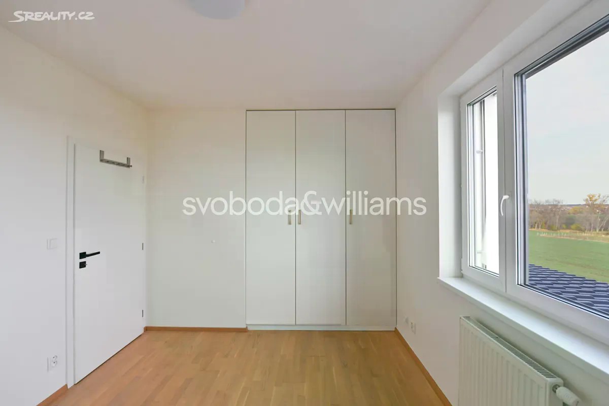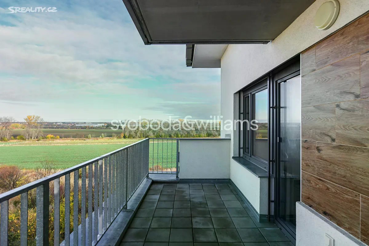 Byt s terasou, garážovým stáním a částečně zařízeným interiérem v kvalitním standardu je součástí nízkoenergetického bytového domu v moderním rezidenčním komplexu rozkládajícím se nedaleko stanice metra Zličín a přírodní památky Hostivické rybníky. Plocha bytu umístěného ve 3. podlaží je rozdělena na obývací pokoj propojený s kuchyní a jídelnou, dále 1 ložnici, koupelnu (s WC, sprchovým koutem a pračkou), předsíň a komoru. Z obývacího pokoje vede vstup na terasu s pěkným výhledem do dalekého okolí. Bytový dům byl dokončen v r. 2020. V bytě jsou dřevěné podlahy, okna mají venkovní žaluzie, vytápění řeší plynový kotel. Kuchyňská linka je plně vybavena spotřebiči Siemens, v obývacím pokoji je vinotéka, v předsíni, ložnici i koupelně jsou vestavěné skříně. K bytu přísluší garážové stání. Výborně udržovaný dům má výtah, k bezpečí osob i majetku přispívá kamerový systém. Bývalá ves a nyní součást Prahy Sobín poskytuje možnost příjemného bydlení na okraji metropole a zároveň v dosahu všeho potřebného. V místě funguje restaurace nebo prodejna potravin, další občanská vybavenost je vzdálena jen pár minut autem či autobusem. Za 8 minut lze dojet k nákupnímu centru a stanici metra Zličín, velmi rychlá je také cesta autem na letiště. Oblast zpříjemňují cyklostezky, upravená zeleň kolem domů a přírodní památka Hostivické rybníky. Podlahová plocha 50,9 m2, terasa 11,4 m2.