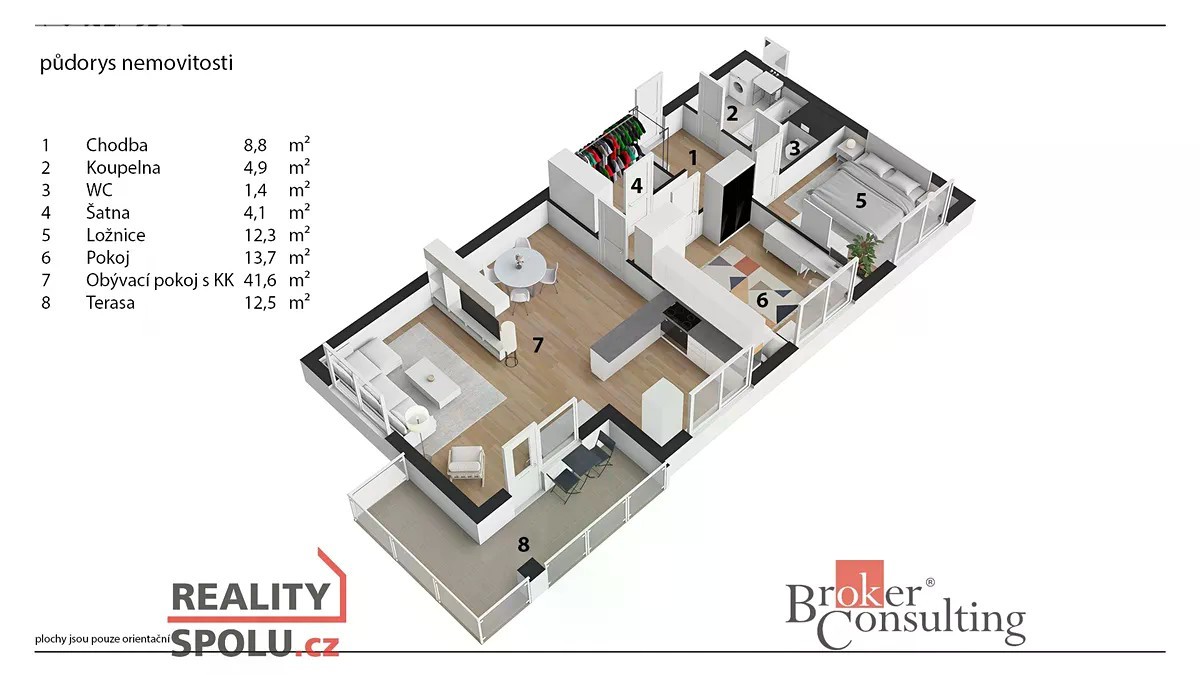 Nabízíme k prodeji světlý a vzdušný byt 3+kk o celkové ploše 106 m² v moderním cihlovém domě zkolaudovaném v roce 2000. Byt se nachází ve vyhledávané lokalitě s kompletní občanskou vybaveností - v blízkosti najdete školy, školky, lékaře, obchody i sportoviště. Lokalita vyniká také výbornou dopravní dostupností, ať už cestujete autem nebo MHD. Interiér bytu je v původním, ale velmi dobře udržovaném stavu - stačí vymalovat a můžete bydlet. Dispozice nabízí vše, co rodina ocení: prostorný obývací pokoj s kuchyňským koutem a jídelní částí (43 m²), dvě neprůchozí ložnice, koupelnu, samostatné WC, šatnu a prostornou vstupní chodbu. K bytu náleží i praktický úložný box na přilehlé chodbě. (7 m²). Součástí bytu je lodžie o velikosti 10,1 m², ideální pro odpočinek nebo posezení s kávou. Dům má výtah, čtyři samostatné vchody a celkem 80 bytových jednotek. Cihlová konstrukce zajišťuje výbornou tepelnou i zvukovou izolaci, nízké provozní náklady a dlouhou životnost stavby. Topení i ohřev vody jsou řešeny dálkově horkovodem z Opatovic - bez nutnosti vlastního kotle. V okolí domu je dostatek bezplatného parkování. Vlastnictví je osobní a financování je možné řešit hypotečním úvěrem - se kterým vám rádi pomůžeme. Byt je volný a ihned k nastěhování. Pro lepší představu o možnostech interiéru jsou mezi fotografiemi přiloženy 3D půdorys a vizualizace základních místností po úpravě a zabydlení.