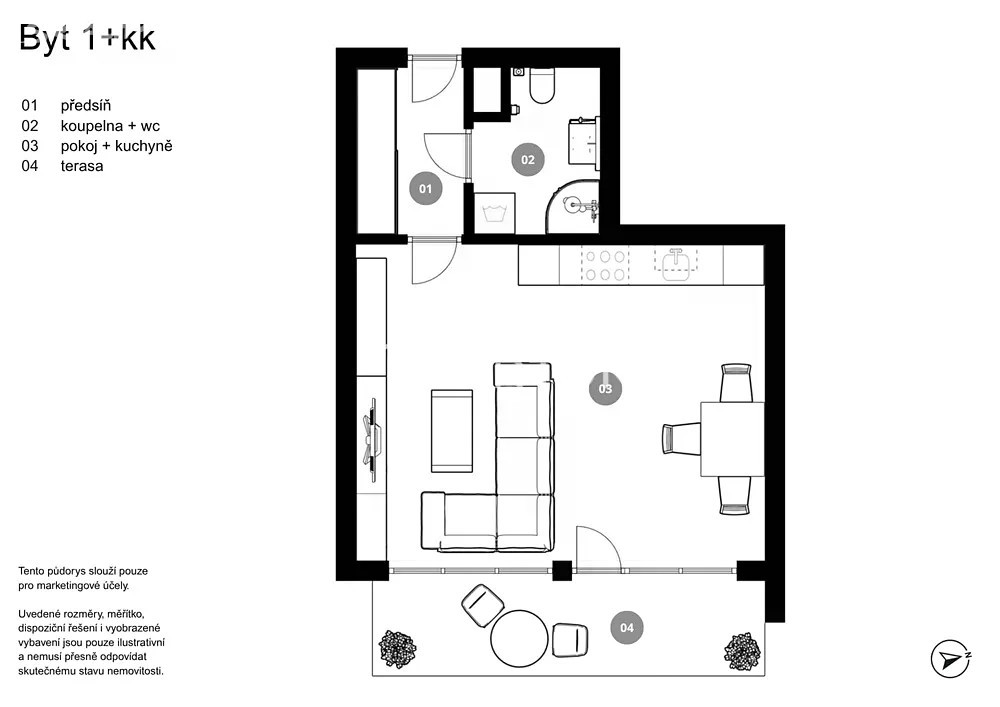 Hledáte moderní byt s dobrou dopravní dostupností anebo jistotou stabilního výnosu z pronájmu? Nabízíme byt 1+kk o velikosti 31,8 m² s prostorným balkonem 8 m² orientovaným na východ, který se nachází ve 2. patře cihlového domu. Byt tvoří rozlehlý obytný pokoj s kuchyňským koutem, vstupní chodba a koupelna se sprchovým koutem. Z obývací části je vstup na prostornou terasu orientovaný do klidné části projektu. Byt se prodává bez vybavení, což dává novému majiteli možnost upravit si prostor podle vlastních představ. V domě je výtah a celkový stav odpovídá moderní výstavbě. Byt nemá sklep ani garážové stání, avšak parkování je bezproblémové přímo před domem. Praha 9 - Kyje patří mezi vyhledávané lokality díky kombinaci klidného prostředí, kompletní občanské vybavenosti a výborné dostupnosti do centra. Zastávka autobusu je přímo u projektu, na stanici metra B - Rajská zahrada se dostanete za 8 minut pěšky nebo 3 zastávky autobusem. V blízkém okolí se nachází nákupní centrum Černý Most, park Kyjský rybník s cyklostezkami, školy, školky a další služby pro pohodlné bydlení. Na projekt navazuje pás zeleně ideální pro ranní běhání nebo venčení mazlíčků. Byt je v současnosti pronajatý spolehlivé nájemnici, která řádně platí a v případě dohody může v nájmu pokračovat. Aktuální nájemné činí 14 900 Kč + poplatky, což zajišťuje okamžitý výnos bez nutnosti hledat nového nájemce. Byt je vhodný také jako startovací bydlení pro jednotlivce nebo pár, případně byt pro studenty.