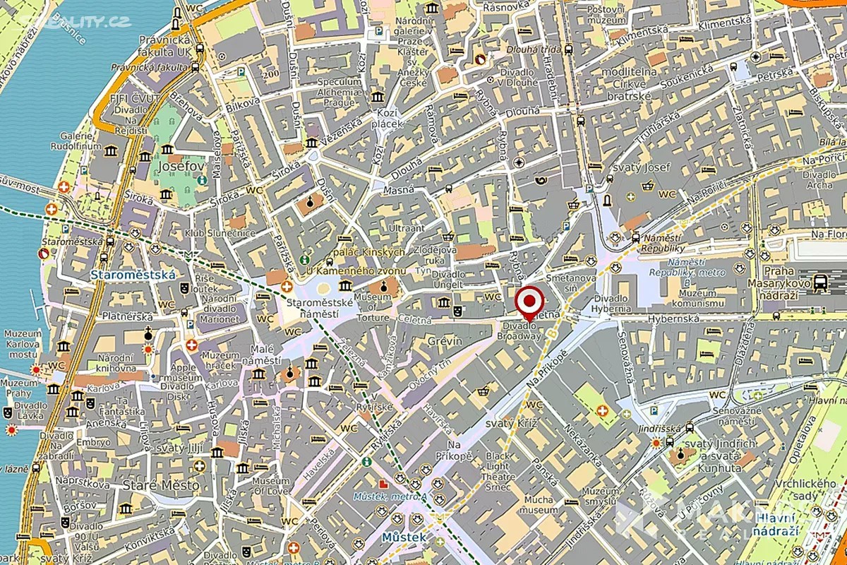 Evidenční číslo / ID zakázky: V3447 **Neplatíte provize** Palác Broadway se nachází v oblíbené administrativní a obchodní čtvrti Prahy, mezi ulicemi Na Příkopě a Celetná. Velkou výhodou je snadná dostupnost MHD; v blízkosti budovy se nachází stanice metra Můstek - trasa A, B a Náměstí Republiky - trasa B a několik tramvajových zastávek. Jedná se o prostory celkovou plochou 130 m2 umístěné v 7.NP na jedné z nejprestižnějších business adres na Praze 1. Protože se jedná o nejvyšší patro, výška stropu je přibližně 2 metry. Měsíčné nájemné: Kanceláře 13 EUR/m2/měsíc + poplatky 130 Kč/m2 Skutečná energetická třída PENB může být vyšší než třída G, kterou jsme povinni uvést v souladu se zákonem z důvodu absence potvrzení. V našem portfoliu jsou i další nabídky pronájmu kancelářských prostor, pro konzultace prosím kontaktujte realitního makléře.