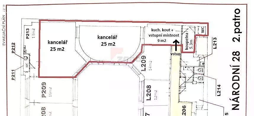 Exkluzivně nabízíme k pronájmu 2 zajímavé kanceláře/ateliér o celkové výměře 65 m2 (2x kancelář po 25m2, kuchyňka, vlastní koupelna a WC- 15m2), ve druhém patře neoklasicistního obchodně-kancelářského domu z roku 1926 (navržen známým architektem Matějem Blechou), přímo u metra Národní Třída (trasa B) nebo Můstek a tramvajové zastávky, s výhledem do klidného vnitrobloku. Obě kanceláře jsou velmi vzdušné a světlé, s vysokými stropy 3,7m, vlastní kuchyňkou a sociálním zařízením (sprchový kout, WC). Jsou částečně zařízené, dle dohody je možné nábytek vystěhovat. Oválná kancelář je průchozí do zadní kanceláře viz plánek. Součástí kanceláře je klimatizace, IT kabeláž, zaveden kabel UPC, recepce v přízemí domu, 2x nový výtah, ostraha 24h. V suterénu budovy lze využívat pro prezentace a firemní akce kinosál s promítačem (75 míst) za 800,-Kč/hod+DPH. Měsíční nájem činí 26.450,- Kč bez DPH + služby cca 11.895,-Kč vč. DPH (voda, elektřina, topení, odpad, ostraha a údržba objektu) dle skutečné spotřeby. Není zahrnut internet. Při podpisu smlouvy je nutné uhradit kauci ve výši dvou nájmů bez služeb. Neplatíte provize RK. Kancelář je vhodná pro klidnou, nerušící činnost a je volná ihned. V případě zájmu o prohlídku či další informace nás neváhejte kontaktovat.