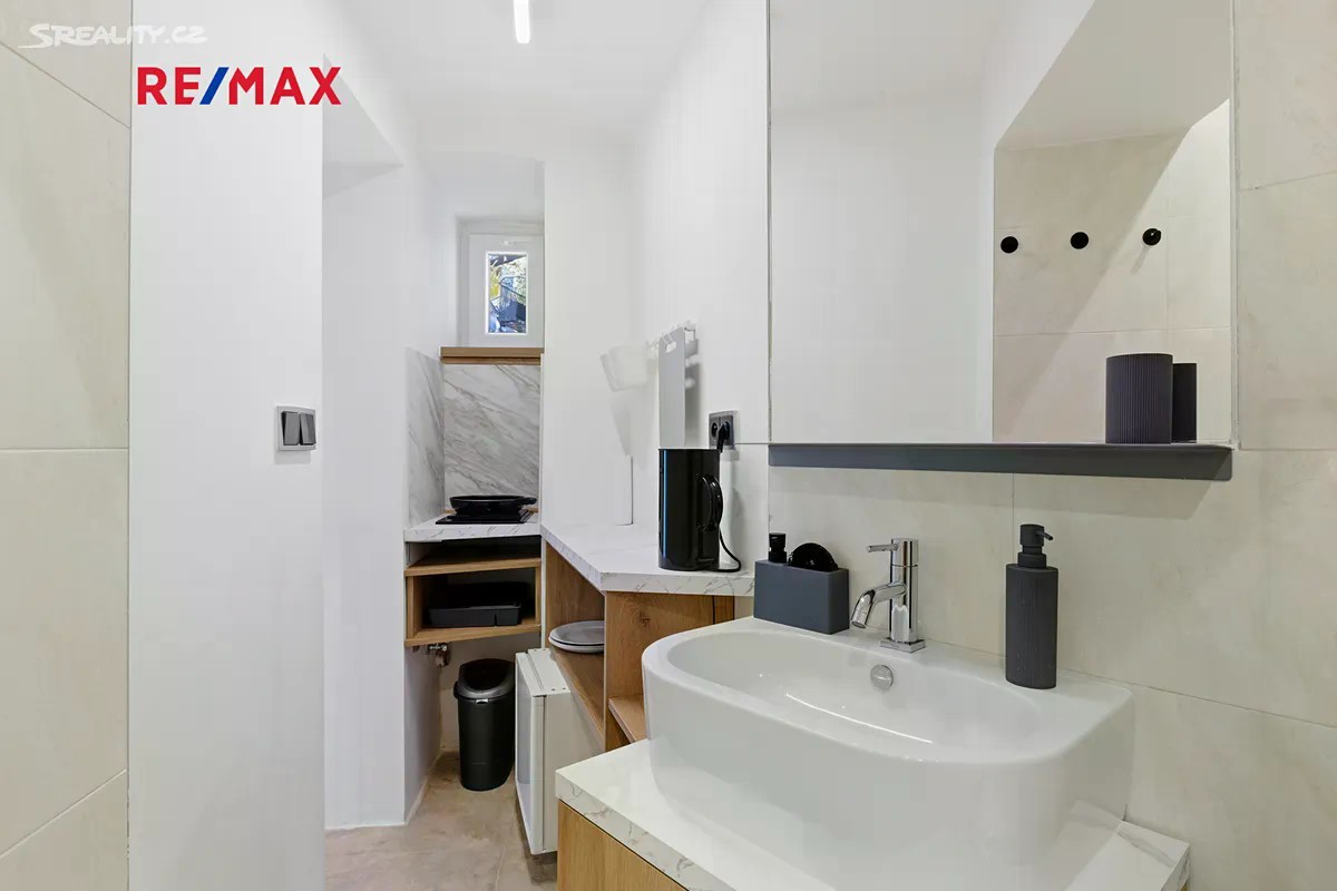 Dovoluji si Vám nabídnout k pronájmu nebytový prostor po rekonstrukci o celkové výměře 17,6 m², který se nachází v suterénu činžovního domu ve vyhledávané lokalitě na adrese Kubelíkova 1224/42, Praha 3 - Žižkov. Prostor je situován ve vnitrobloku objektu, což zajišťuje klidný provoz a dostatek soukromí. Dominantou interiéru je působivý cihlový klenbový strop, velkoformátová dlažba a moderní minimalistické pojetí, které vytváří reprezentativní prostředí vhodné pro kancelář, ateliér, pracovní studio nebo tiché studentské bydlení. Dispozici tvoří hlavní místnost a vlastní sociální zázemí se sprchovým koutem a toaletou. K dispozici je také menší koutek vhodný pro přípravu jednoduchého občerstvení. Vytápění je zajištěno elektrickým podlahovým topením. Součástí nájmu je sklep o velikosti 4,4 m², umístěný v blízkosti jednotky. Ve sklepě je přívod vody, odpad pro připojení pračky, elektrická zásuvka a osvětlení. Nájemce může dále využívat venkovní posezení ve vnitrobloku, odkud je částečný výhled na Žižkovskou televizní věž. Nájemné: 14.500 Kč/měsíc Zálohy na služby a elektřinu: 5.000 Kč/měsíc Internet: není součástí nájmu Dostupnost: ihned k nastěhování Pro bližší informace či sjednání prohlídky mne neváhejte kontaktovat.