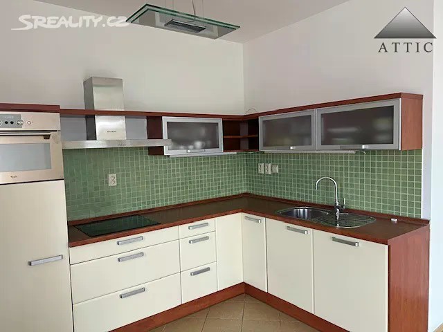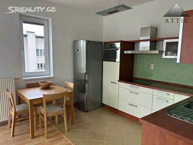 K dlouhodobému nájmu vám nabízíme velmi pěkný byt 2+kk o výměře 53,7 m2 + balkon 8,1 m2 s ojedinělým výhledem do zeleně v klidné ulici Mattioliho. Byt má orientaci na jih do zeleně a na západ. Obývací pokoj s kuchyňským koutem má 25 m2. Prostorná kuchyňská linka má samostatnou lednici s mrazákem, elektrickou varnou desku, digestoř, pečící a mikrovlnnou troubu a myčku na nádobí. V obývacím pokoji může zůstat menší jídelní stůl se židlemi, sedačka a křeslo. Z obývacího pokoje se vstupuje na balkon, na okně na jih jsou předokenní žaluzie, na ostatních oknech rolety. V ložnci 12,1 m2 je dvojpostel 180 cm široká bez matrací s nočními stolky a komodou. V koupelně 4,5 m2 je vana, umývadlo se zrcadlem, topný žebřík, pračka a WC. V předsíni 8,9 m2 je veliká, dobře řešená vestavná skříň. Byt je v posledním 5. patře (6.NP) s výtahem. Ve výměře bytu je prostorná úložná komora 3,2 m2 na patře hned vedle bytu. Součástí nájmu je garážové parkovací stání ve 2.PP. Dům je bezbariérový z roku 2006. Nájemné 23.500 Kč, záloha na poplatky 3.500 Kč pro 1 osobu, 3.900 Kč pro 2 osoby nebo 4.300 Kč pro 3 osoby + elektřina cca 1.500 Kč. Kauce 30.000 Kč, provize 23.500 Kč + DPH. Lze si převzít internet za cca 400 Kč měsíčně od O2, který je nyní do bytu zaveden. Velmi příjemná lokalita, v docházkové vzdálenosti je obchodní centrum Vivo! Hostivař a v okolí je veškerá občanská vybavenost. Kousek od domu je autobusová zastávka Práčská a tramvajová zastávka Obchodní centrum Hostivař. Doporučuji prohlídku. Připraveno k nastěhování.