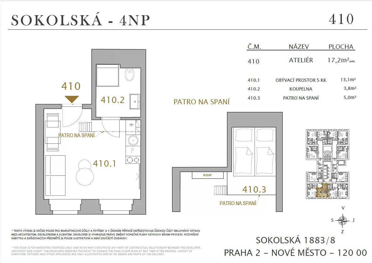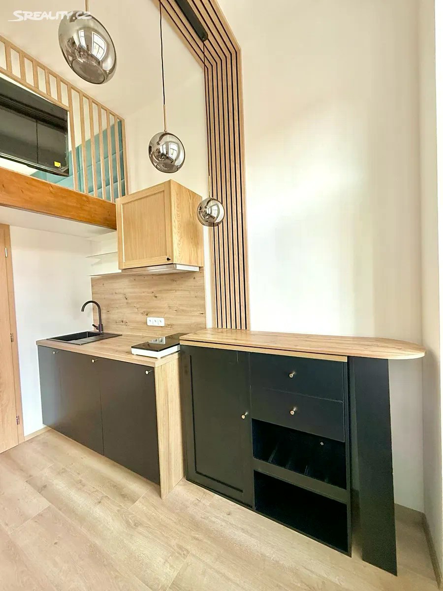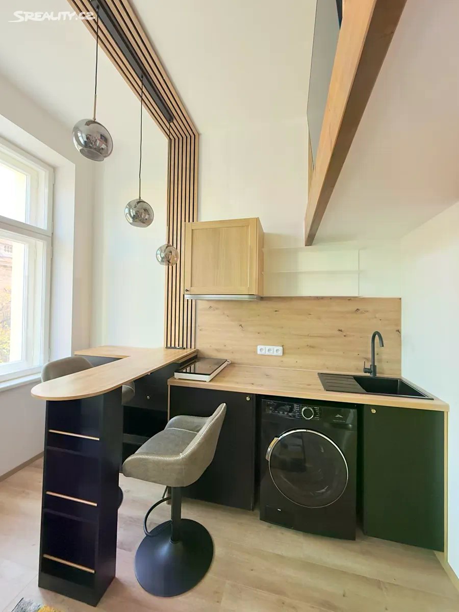 Nabízíme k pronájmu světlý a stylově zařízený byt (atelier) 1+kk s praktickým patrem na spaní, situovaný v samém srdci Prahy 2, jen 5 minut chůze od metra I. P. Pavlova. Byt o celkové ploše 22 m² (obytná část 17,2 m² + patro na spaní 5 m²) se nachází ve 4. patře udržovaného činžovního domu po rekonstrukci s výtahem. Součástí nájmu je také sklepní kóje. Dispozice bytu nabízí: - obývací prostor s kuchyňským koutem, - patro na spaní s místem pro dvojlůžko, - koupelnu se sprchovým koutem a toaletou. Byt je plně vybavený designovým nábytkem i spotřebiči, připravený k okamžitému nastěhování. Ideální pro 1-2 osoby (studenty, mladý pár nebo jednotlivce). Centrum Prahy - pěší vzdálenost na metro, tramvaj, kavárny a obchody. Skvělá dopravní dostupnost a kompletní občanská vybavenost v okolí. Zeleň a možnosti odpočinku nabízí nedaleký park Folimanka, ideální místo pro procházky nebo sport. Perfektní lokalita pro ty, kdo chtějí bydlet v centru, ale zároveň v dosahu přírody a klidných míst k odpočinku. Nájem: 21.000 Kč / měsíc Poplatky: 2.500 Kč + elektřina Kauce: 2 měsíční nájmy Provize RK: 23.500 Kč Volné ihned. Pro více informací nebo domluvu prohlídky nás neváhejte kontaktovat.