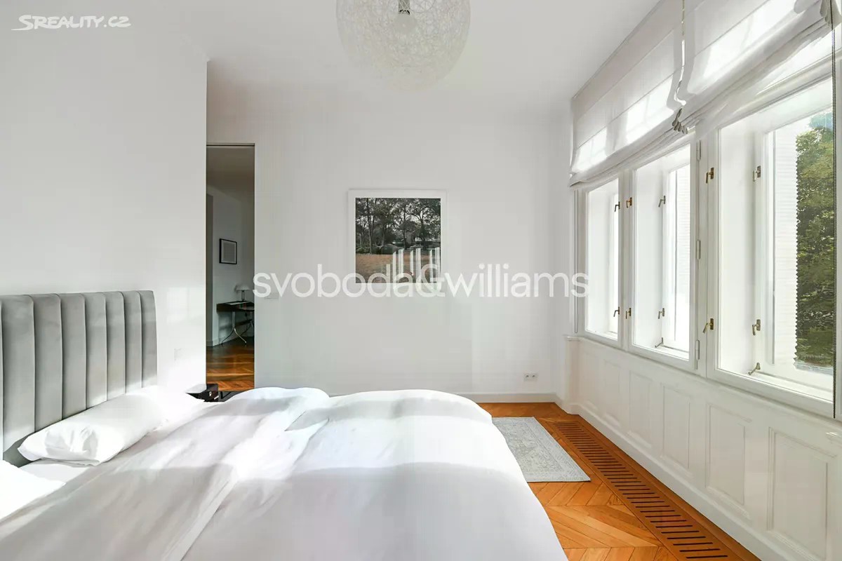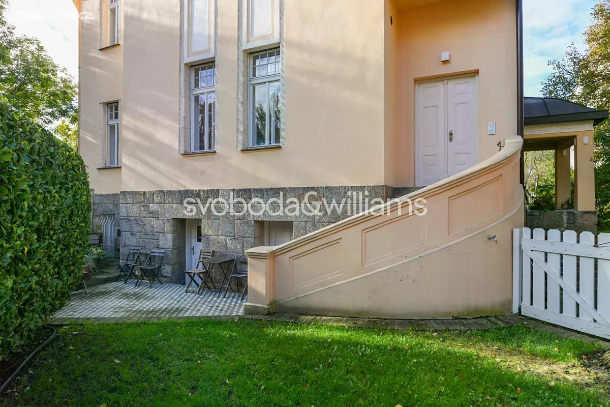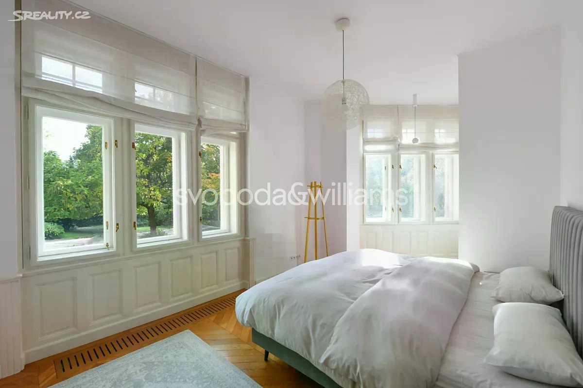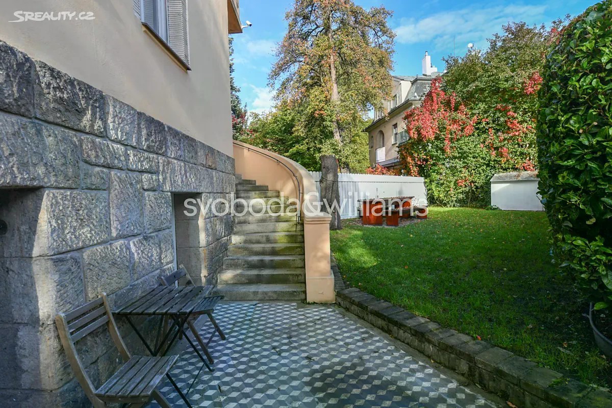 Klidné bydlení v nádherné lokalitě přímo na okraji Letenských sadů. Nabízíme k pronájmu zrekonstruovaný zařízený rohový byt s privátní zahradou a výhledem do parku, situovaný ve zvýšeném přízemí zrenovované činžovní vily. Dům stojí v prestižní lokalitě na Hradčanech v sousedství Kramářovy vily, pár minut chůze od Pražského hradu a stanic metra Malostranská a Hradčanská, s veškerou občanskou vybaveností a kvalitními restauracemi v bezprostředním okolí. Lokalita nabízí i rychlou dostupnost na letiště a do četných mezinárodních škol. Interiér bytu tvoří obývací pokoj s jídelním koutem, plně vybavená kuchyň s jídelním prostorem, hlavní ložnice s vybavenou šatnou a en-suite koupelnou (vana, sprchový kout, toaleta), dětská ložnice s vestavěnou skříní a úložnými prostory, samostatná toaleta, vstupní chodba s vestavěnými skříněmi a privátní zahrada. Masivní dřevěné parkety, mozaiková dlažba, bezpečnostní vstupní dveře, elektricky ovládané předokenní rolety, plynový kotel, podlahové topení v koupelně, pračka se sušičkou, myčka, vinotéka, TV, alarm, velký sklep.