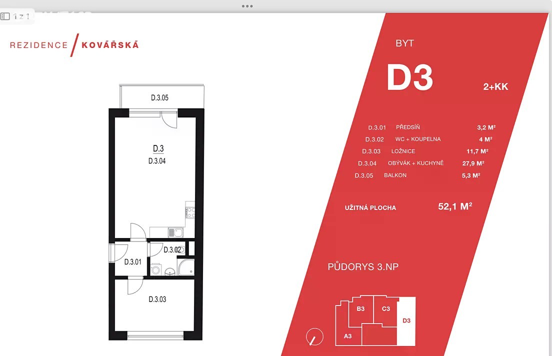 Pronájem bytu 2+kk 53 m² Kovářská, Brno