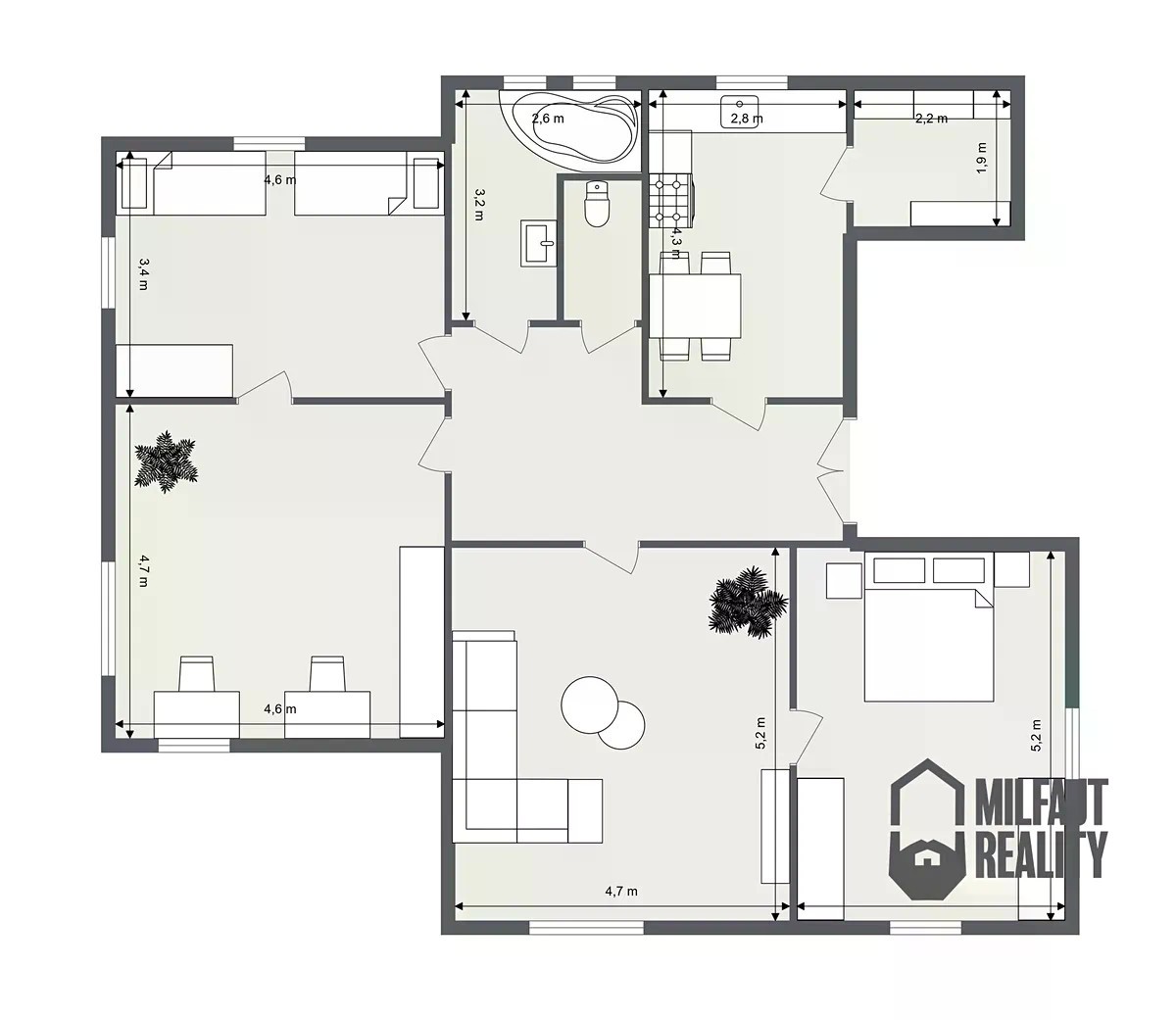 Představuji vám velkorysý rodinný byt 4+1, 111 m². Je synonymem vkusu a luxusu - toho nenápadného a nadčasového. Obrovský sklep, půda, komora i zahrada jen podtrhují jeho praktičnost pro rodinu. Lokalita jeho kvality ještě umocní - centrum města a přitom naprostý klid. Keilův vrch je z mého pohledu neprávem opomíjená mikrolokalita. Zástavba nádherných vil a bytových domů, klidné uličky, dostatek zeleně a místo na kraji centra. Okrajem centra mám na mysli 900 metrů od liberecké radnice. To znamená jediné - kompletní občanskou vybavenost máte přímo u domu. Je tu všechno, co jen potřebujete, včetně dětského hřiště, skateparku, cyklostezky nebo ekoparku. Místo pro rodinný život jako dělané. Keilův vrch s sebou nese mýtus - obavy z hluku od průtahu Libercem. Nemějte obavy, je tu opravdu klid. Uličky kolem domu nespadají do modré rezidenční zóny, a tak je tu dostatek parkování. Jedno místo pro byt bude vybudováno přímo na pozemku u domu. Zbylou část tvoří zahrada - místo pro posezení s přáteli, odpočinek, grilování nebo dětské hřiště, které tu už je. V domě jsou pouze 4 bytové jednotky - to zaručuje komorní atmosféru, dobré vztahy a zahradu, kterou opravdu můžete využívat. Dům je ve skvělé kondici a majitelé se o něj pečlivě starají s ohledem na jeho historii. Výměrou 111 m² a dispozičním řešením 4+1 je byt ideální pro rodinné bydlení. Přesně tak ho majitelé využívali a zrekonstruovali. Rekonstrukci pojali opravdu poctivě, s ohledem na historickou hodnotu - a hlavně se na ničem nešetřilo. Bytu vévodí dřevo, a to hned v několika podobách. Podlahy jsou opravdu dřevěné, žádná imitace - stejně jako nová dřevěná okna. Ve stejném duchu je byt vybavený vestavěným nábytkem, který nabídne neskutečné množství propracovaných úložných prostor. To rozšiřuje praktická spíž v kuchyni. Pro potřeby rodiny jsou v bytě dva dětské pokoje - respektive dětská ložnice (nábytek je součástí) a dětská herna. Koberce jsou pro pohodlí dětí a zároveň chrání dřevěné podlahy. Ložnici rodičů a obývací pokoj naopak dřevo designově definuje. Stejně jako renovované původní dveře a zárubně. Atmosféra bytu si vás podmaní. Stejně jako výhled. Z bytu je výhled téměř na všechny světové strany a v každou denní hodinu nabídne jinou atmosféru. Mě si získaly západy slunce, které si užijete třeba z krásné koupelny, až budete relaxovat ve vaně. Pro rodinu jsou podstatné samozřejmě i náklady. Vytápění a ohřev vody je řešen vlastním plynovým kotlem. Na plyn majitelé platí zálohy kolem 3 000 Kč, na elektřinu 1 500 Kč a na vodu kolem 1 000 Kč. Fond oprav se v domě neplatí. Jak jsem zmínil v úvodu - k bytu náleží prostorný sklep o rozměrech cca 3×5 metrů. Půda je společná, ale každý tu má svou prostornou kóji. Zahrada je ve společném užívání a je v krásném, udržovaném stavu. Pokud vás neoslovuje strohost novostaveb a hledáte bydlení, které má kouzlo, duši a atmosféru, tady ve Sládkově budete nadšení stejně jako já. Přijďte za mnou na prohlídku, byt si zažijte, navnímejte a sami uvidíte, zda je tohle místo pro váš nový život. Neváhejte mě kontaktovat - k dispozici jsem ve všední dny 8:00-18:00, jinak prosím SMS, WhatsApp nebo e-mail. Těším se na viděnou. Z důvodu absence PENB je nemovitost dočasně zařazena do kategorie G. Majitel si vyhrazuje právo prodat nemovitost nejvýhodnější nabídce. Uvedené výměry jsou orientační.