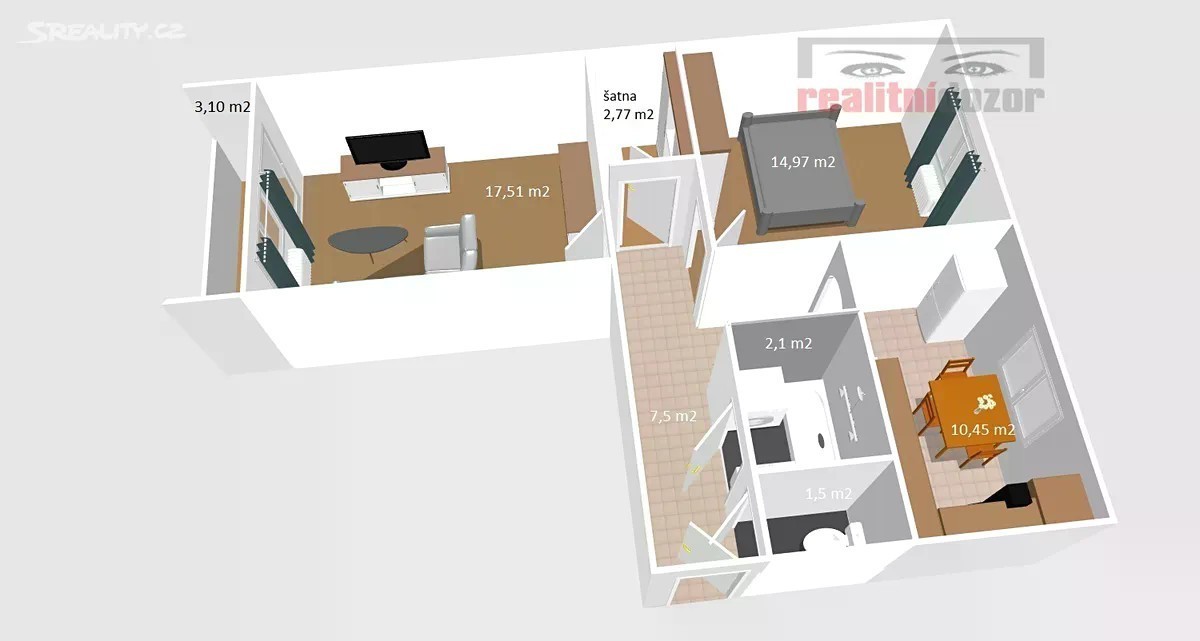 Ve výhradním zastoupení majitele nabízíme k prodeji útulný a prostorný byt v osobním vlastnictví 2+1 s lodžií a sklepem v domě na ul. Jakuba Obrovského v Brně - Bystrci. CP bytu činí 61,4 m2. Byt je situovaný ve 3.patře/3 cihlového domu, bez výtahu. Dispozice bytu: Koupelna 2,10 m2, WC 1,15 m2, 1. Pokoj 14,97 m2, 2. Pokoj 17,51 m2, Kuchyně 10,45 m2, Předsíň 7,50 m2, Šatna 2,77 m2, Sklep 1,85 m2, lodžie 3,10 m2. Byt prošel částečnou rekonstrukcí. V novém zděném jádru je samostatné WC a koupelna se sprchovým koutem, umyvadlem, napojení pro pračku. Součástí rekonstrukce koupelny a předsíně jsou nové elektrické, vodovodní, odpadní rozvody. Po rekonstrukci také lodžie. Na podlaze v kuchyni a chodbě je dlažba, v koupelně a na WC je keramická dlažba/keramický obklad, šatna lino. V pokojích jsou parkety. Okna plastová se žaluziemi. Součástí prodeje je kuchyňská linka včetně vestavěných spotřebičů (dřez s vod.baterií, trouba, sklokeramická deska) a bude při předaný vyklizený. Topení je zajištěno vlastním plyn. kotlem s kotelnou umístěnou v domě. Ohřev vody elektrickým bojlerem. V domě je kočárkárna/kolárna. Nyní proběhla částečná revitalizace domu na chodbách tj. v říjnu rekonstrukce elektřiny a příští rok výměna plastových oken na chodbách, světel, kamer. Předpis měsíčních záloh je nyní stanoven na 6.260,-Kč + elektřina, + plyn V rámci realitního servisu mohu doporučit finančního poradce, který pro Vás vybere nejvýhodnější variantu úvěru Cena je uvedena včetně provize RK. Dům se nachází na konci ulice v klidné lokalitě obklopený zelení a s přímou dostupností do centra Brna tramvají, popř. autobusem. Za domem se napojíte na procházku kolem řeky Svratky a k Brněnské přehradě se dostanete během chvilky. Jen přes silnici se nachází obchodní centrum Javor, kde najdete lékárny, obchody, trafiku, restaurace apod. Dále je takřka za rohem velkoobchod Lídl, Kik, lékárna. V okolí školky, sportoviště, společenské centrum apod. Bezproblémové parkování u domu.