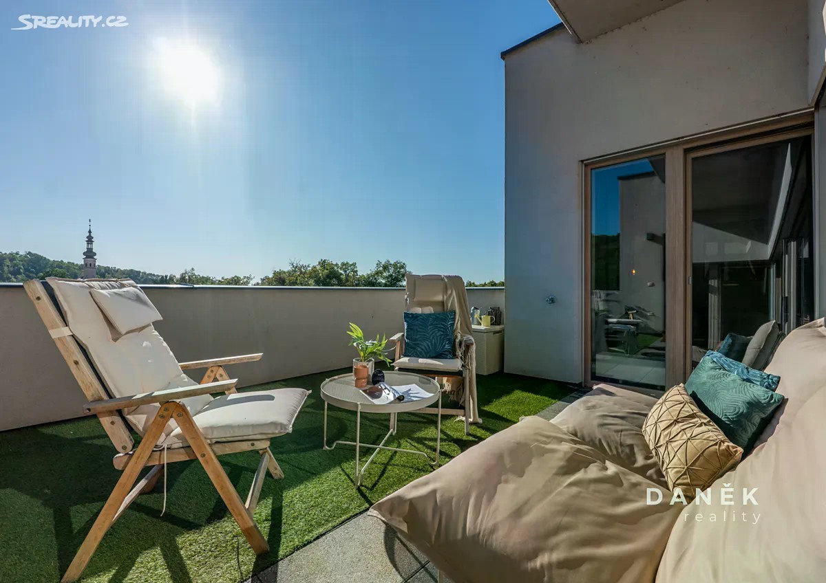 Prosluněný byt 3+kk s terasou 25 m² - Oslavany u Brna Prostorný a prosvětlený byt o velikosti 76 m² s terasou (25 m²), sklepem (3 m²) a dvěma parkovacími místy - garážovým a venkovním. Byt se nachází ve 4. nadzemním podlaží moderního bytového komplexu Rezidence u zámku, který vyniká nejen svou polohou, ale také kvalitou provedení a nízkými provozními náklady. Díky východní orientaci a velkým oknům s venkovními žaluziemi působí interiér svěže a vzdušně po celý den. V bytě se nachází kuchyňská linka na míru a také vestavěná skříň v ložnici, což zajišťuje praktické využití prostoru. Podlahy jsou řešeny kombinací laminátu v obytných místnostech a keramické dlažby v koupelně, která podtrhuje moderní vzhled a funkčnost celého bytu. Samotná stavba je koncipována s důrazem na dlouhou životnost a úspornost. Nosný skelet je železobetonový, doplněný o keramické zdivo s tepelnou izolací. Vnitřní příčky jsou zděné, což přispívá k lepší akustice a celkovému komfortu bydlení. Byt je vybaven bezpečnostními vstupními dveřmi třídy B v ocelové zárubni, okna i balkonové dveře jsou plastová s izolačním trojsklem. O vytápění a ohřev vody se stará moderní plynová kotelna umístěná v 1. NP, přičemž každá jednotka má vlastní měřiče vody a tepla. Energetická náročnost budovy spadá do třídy B - velmi úsporná (77 kWh/m²/rok), což zajišťuje výrazně nižší náklady na provoz. Celkové měsíční náklady činí 7 030 Kč, z toho evidenční list bytu 4 700 Kč a zálohy na elektřinu 2 330 Kč. Oslavany u Brna Rezidence u zámku je moderní bytový komplex v Oslavanech u Brna, vzdálených jen 25 km od centra Brna. Samotná rezidence sousedí s rozlehlým areálem oslavanského zámku, kulturní památky z 13. století. V zámeckém parku vás čeká dětské hřiště, koupací biotop i klidové zóny, kde můžete odpočívat nebo trávit čas s rodinou. Život v Oslavanech kombinuje klid menšího města s pohodlím, které byste čekali spíše ve větším centru. Přímo u Rezidence najdete poštu a útulnou kavárnu, kam si můžete zajít na kávu cestou z práce. Hned naproti vás čeká prodejna potravin, takže ranní nákup na snídani vyřešíte doslova za pár minut. A pokud dostanete chuť na něco sladkého, jen pár kroků od domu vás přivítá cukrárna a kavárna Caramella s čerstvými zákusky a dorty. Tradiční vůně chleba vás zavede do vyhlášeného pekařství Šlechtický, zatímco gurmáni ocení stylovou restauraci Na zámku s místním pivovarem, kde se snoubí skvělá kuchyně s unikátní atmosférou. O vaše pohodlí se postará také kompletní občanská vybavenost: městský úřad, knihovna, lékárna i zdravotní středisko s praktickými lékaři a specialisty - vše v docházkové vzdálenosti. Nechybí ani pobočka České spořitelny s bankomatem a další obchody v okolí. Na větší nákupy nemusíte jezdit daleko - za pár minut jste v Ivančicích, kde najdete hypermarket Tesco a další obchody s drogerií či textilem. Díky této jedinečné kombinaci blízkosti služeb, gastronomie a pohodlného každodenního života jsou Oslavany ideálním místem pro nové bydlení.