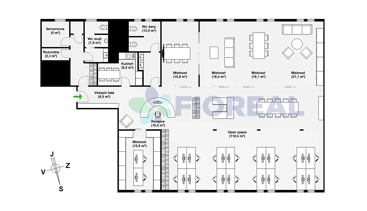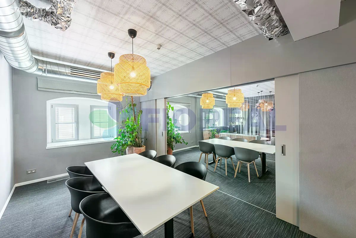 V exkluzivní zastoupení Vám zprostředkujeme dlouhodobý pronájem nadstandardních, designových, kompletně zařízených kanceláří o ploše 280m², v druhém patře cihlového domu s výtahem, který je součástí areálu Korunní dvůr. Součástí pronájmu jsou služby recepce, ostrahy, včetně možnosti pronájmu několika garážových parkovací stání v podzemním podlaží za měsíční poplatek 5.000, Kč/kus. Prostor je členěn do třech zasedacích místnosti z nichž dvě se používají ke konferencím, dvou samostatných kanceláří a jedním centrálním prostorem typu openspace, dále recepcí, kuchyňkou, toaletami i technickým zázemím. Kanceláře jsou plně zařízené moderní nábytkem, kuchyňskou linkou s mikrovlnou troubou, myčkou, lednicí, LCD televizí a klimatizací (další vybavení dle fotodokumentace, mimo elektroniku). Jedná se o lukrativní lokalitu s výbornou dopravní dostupností, tramvajovou zastávkou přímo před budovou a stanicí metra A Flora, do 2 min. jízdy tramvají či do 8 min pěší chůze. V místě se nachází veškerá občanská vybavenost včetně potravin Billa. Celkové měsíční poplatky činí 22.650, Kč, tj. (z toho 4.500, Kč elektřina, 18.150,Kč ostatní služby spojené s užíváním kanceláře). Volné od 01.01. Více informací u makléře (CENY jsou uvedené bez DPH, tj. k nájmu i ke službám je nutno připočíst 21%).