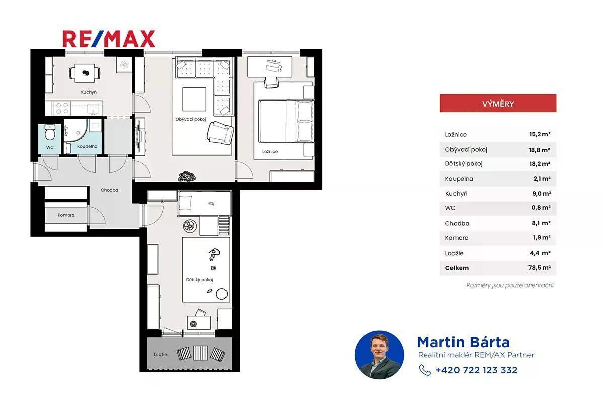 Nabízíme prostorný byt o dispozici 3+1 s celkovou užitnou plochou 78 m², který se nachází ve 3. NP cihlového bytového domu v klidné lokalitě Lomnice nad Popelkou. Dispozice zahrnuje kuchyň, obývací pokoj, ložnici, dětský pokoj, předsíň, koupelnu, samostatné WC a úklidovou místnost. K bytu náleží prostorná sklepní kóje a společné prostory v domě. Byt prošel částečnou rekonstrukcí - nové rozvody elektřiny v mědi, nové rozvody vody; vlastní plynový kotel zajišťuje velmi nízké náklady na vytápění a přípravu teplé vody. Bytový dům je zateplen, má plastová okna a nové vstupní dveře. Před domem je parkoviště a dětské hřiště - ideální pro rodiny. Náklady na bydlení: cca 4 500 Kč/měsíc. Byt je v osobním vlastnictví, volný a připraven k okamžitému nastěhování. Lokalita - ulice Karla Čapka, Lomnice nad Popelkou Velmi příjemná rezidenční část města s výbornou občanskou vybaveností a dopravní dostupností: • MŠ „Dášenka“ - cca 300 m • Obchod s potravinami - cca 400 m • Zimní stadion - cca 650 m • Kino - cca 650 m • ZŠ T. G. Masaryka - cca 1,2 km • Autobusové nádraží - cca 800 m Pokud Vás nabídka zaujala, neváhejte mě kontaktovat - rád Vám poskytnu další informace a domluvím termín prohlídky.