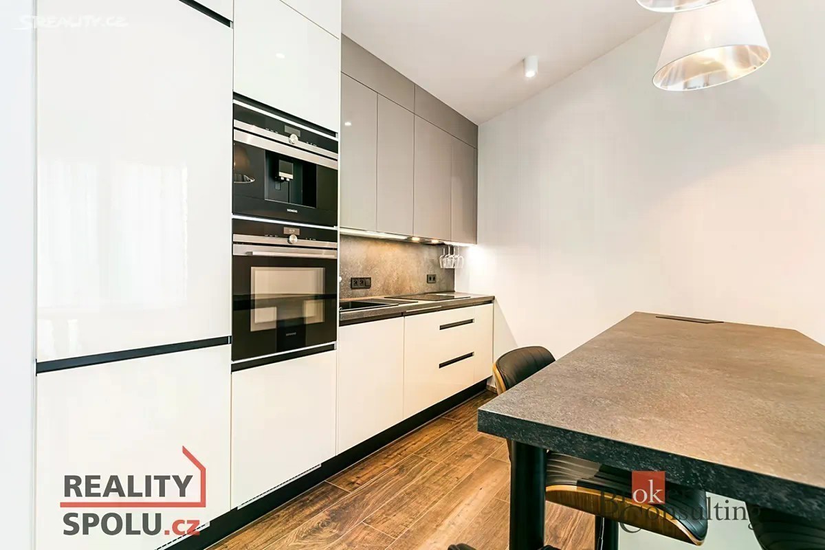 Nabízíme k pronájmu moderní byt o dispozici 3+kk a podlahové ploše 74 m², který se nachází ve 4. nadzemním podlaží novostavby na adrese Vídeňská 1037/2 v Brně. K bytu náleží velká terasa přístupná ze všech pokojů, garážové stání v podzemních garážích a sklepní kóje. Na terase je možné zřídit vířivku, je zde vývod vody a zesílený strop. Dále možné osázet zelení, vyvýšenými záhony apod. Byt působí velmi prostorně a světlé interiéry doplňují velkoformátová okna s přímým vstupem na terasu. Dispozici tvoří obývací pokoj s kuchyňským koutem, dvě samostatné ložnice, koupelna se sprchovým koutem, samostatná toaleta a vstupní hala s úložným prostorem. Kuchyňská linka je kompletně vybavena vestavěnými spotřebiči - indukční deskou, troubou, myčkou, vinotékou, lednicí s mrazákem a digestoří, součástí pronájmu je veškeré vybavení jak je na fotografiích, stačí se tedy nastěhovat. Byt nabízí podlahové vytápění a klimatizaci, které zajišťují komfortní teplotu po celý rok. Velká terasa poskytuje dostatek prostoru pro posezení a relaxaci s výhledem na okolní město. Rezidence se nachází v atraktivní lokalitě nedaleko centra Brna s výbornou dopravní dostupností - v blízkosti je zastávka MHD, obchody, restaurace, kavárny i sportovní centra. Snadno se dostanete také ke kampusu Bohunice a na dálnici D1. Nájemné: 33 000 Kč / měsíc Zálohy na služby a energie: 6 500 Kč / měsíc Kauce (vratná jistota): 66 000 Kč Provize realitní kanceláři (vč. DPH): 39 930 Kč Byt je ihned volný k nastěhování a je ideální pro zájemce, kteří hledají moderní, komfortní a klidné bydlení s terasou v centra Brna. V případě zájmu o prohlídku nás neváhejte kontaktovat.