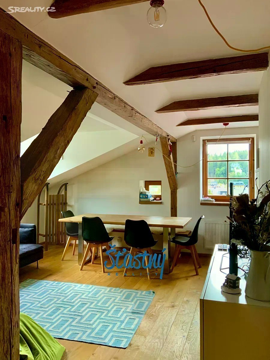 Nabízím k prodeji stylový mezonetový byt 4+kk o rozloze 77,7 m², situovaný v samotném centru oblíbeného lyžařského střediska Černý Důl. Byt se nachází v historickém domě na malebném náměstí, který prošel kompletní a citlivou rekonstrukcí. Tento útulný podkrovní byt ve stylu horské chalupy nabízí nádherné výhledy na celé městečko i přilehlé sjezdovky SkiResortu Černá hora - Pec. Horní patro se sníženým stropem slouží jako útulná spací zóna s vysokou kapacitou lůžek, díky čemuž je byt ideální nejen pro vlastní rekreaci, ale i jako investiční příležitost s možností výnosného krátkodobého pronájmu. Byt je vybaven moderním plynovým kotlem Bosch s dálkovým ovládáním a inteligentními termostatickými hlavicemi, bezpečnostním systémem Jablotron, Wi-Fi připojením a Oneplay TV. Dubové podlahy dotvářejí příjemnou atmosféru interiéru. V domě je k dispozici prostorná lyžárna s uzamykatelnými skříněmi a vyhřívanými stojany na lyžařské a skialpové boty. Černý Důl je atraktivní lokalita celoročně - v zimě nabízí skvělé lyžování a v létě široké možnosti turistiky i cyklovýletů. Na náměstí je přímo zastávka Skibusu, který zajišťuje spojení do celého SkiResortu.
