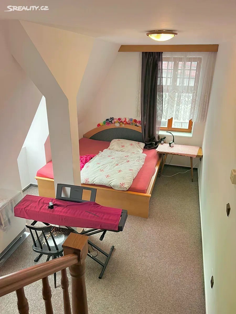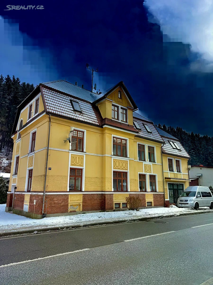 Nabízíme k prodeji prostorný, atypický byt 4+kk v podkroví bytového domu v Jablonci nad Jizerou o celkové výměře 104,5 m2. V bytě se nachází prostorná vstupní chodba, kuchyň, další dva pokoje spojuje malé, dřevěné schodiště směrem dolů a jeden pokoj směrem nahoru. Samozřejmostí v bytě jsou dvě koupelny a samostatná toaleta. Byt je ve velmi pěkném, udržovaném stavu a není potřeba žádná vstupní investice. Celý dům je napojený na veřejnou kanalizaci a vodovod a o teplo se starají elektrická akumulační kamna. Bytový dům, ve kterém je byt umístěn je ve velmi dobrém technickém stavu - jsou zde dřevěná eurookna a zánovní střešní plechový plášť. K domu jsou parkovací místa a součástí prodeje je podíl na udržované zahradě. V současné době je byt obsazený velmi slušným nájemníkem, který může s novou nájemní smlouvou v nájmu případně pokračovat. Město Jablonec nad Jizerou je vzdálené pouze 5 minut od Rokytnice nad Jizerou - místní resort Nahoru patří mezi největší lyžařská střediska v ČR. Pro více informací mne kontaktujte, mohu zajistit i výhodné financování pro tuto nemovitost.