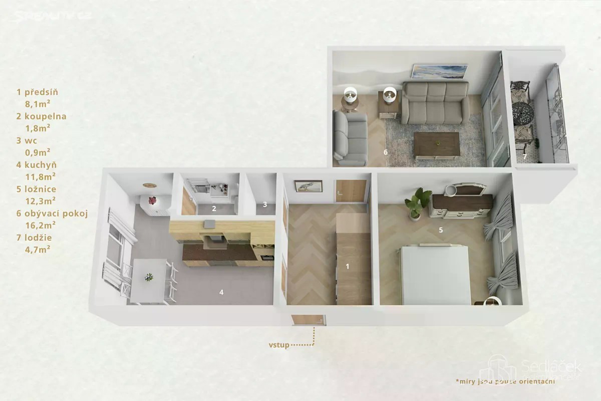 Nabízíme k prodeji byt 2+1 o celkové ploše 63,2 m² včetně lodžie a sklepa, který se nachází ve 3. patře panelového domu bez výtahu v klidné části města Kraslice, ulice Soukenická. Jednotka je v původním, avšak velmi dobře udržovaném stavu. Dispozice zahrnuje kuchyň, obývací pokoj, ložnici, koupelnu, samostatné WC a předsíň s vestavěným úložným prostorem. Okna jsou plastová. Podlaha v kuchyni a v předsíni byla zrenovována. Součástí je také zasklená lodžie a sklepní kóje v mezipatře. Byt se prodává včetně zařízení. Dům je zateplený. Vchod je bezpečný a najdete zde klid. Společné prostory jsou čisté a udržované. Byt je v osobním vlastnictví a je ihned volný od 1.12.2025. V docházkové vzdálenosti se nachází veškerá občanská vybavenost - obchody, škola, lékař i MHD. Můžete se na mě obrátit s návrhem financování - je to zdarma a vždy s pečlivým přístupem.