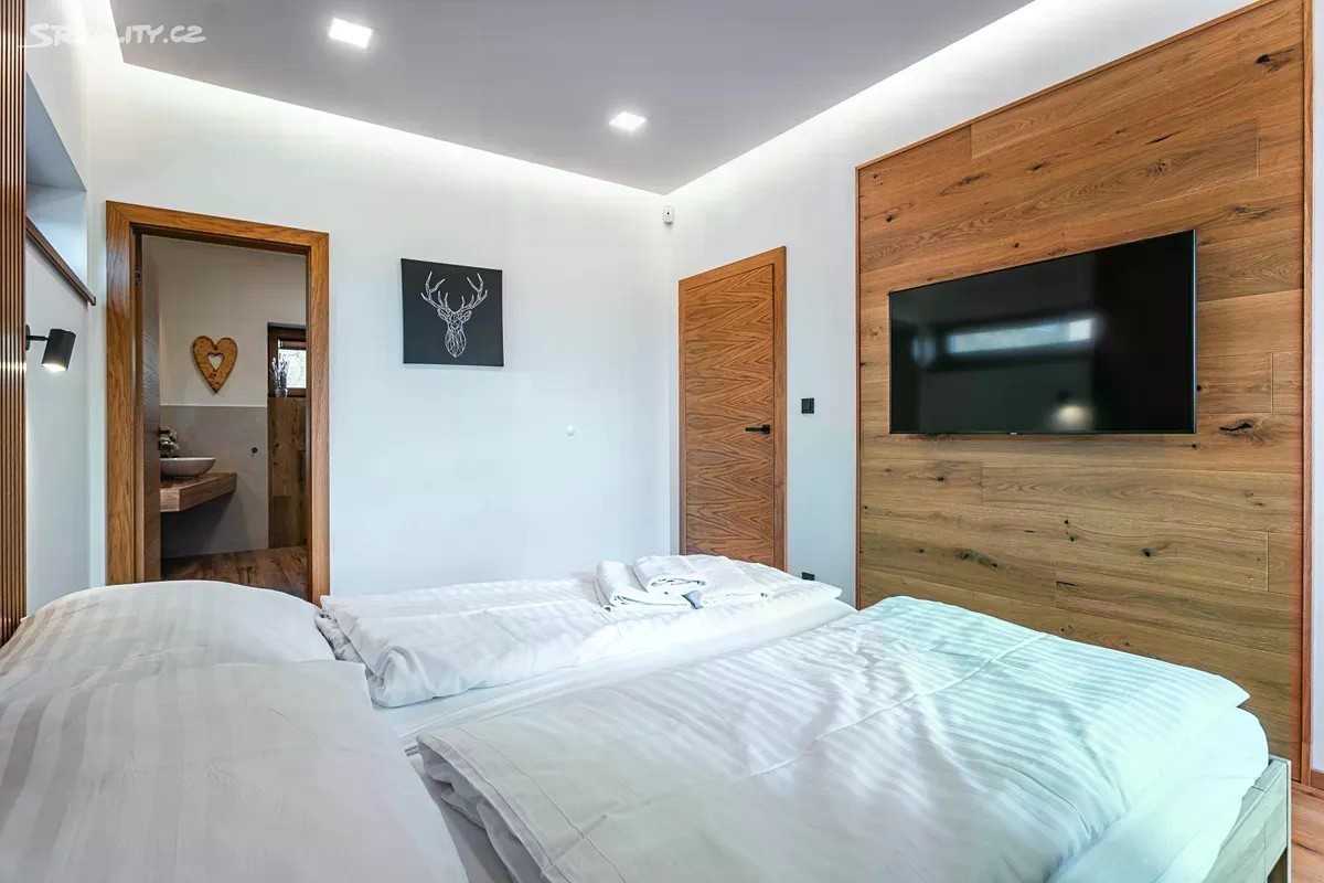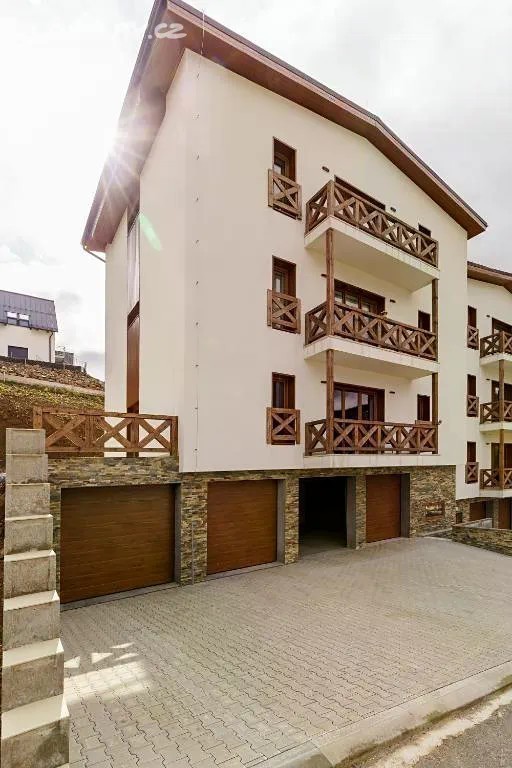 Hledáte spojení moderního komfortu, horské atmosféry a dechberoucích výhledů? Tento vkusně a kvalitně zařízený apartmán v srdci Loučné pod Klínovcem je ideální volbou pro náročné klienty, kteří ocení kvalitu, prostor a klid. Prostorný, světlý apartmán o dispozici 3+kk a velikosti 84 m, navržený pro pohodlný pobyt až osob devíti osob (7 na plnohodnotných postelích). Součástí vybavení je kompletní nábytek na míru, díky kterému je každý centimetr prostoru maximálně funkční a esteticky sjednocený. Centrem apartmánu je obývací pokoj s řemeslně kvalitně zpracovanou kuchyní na míru (varná deska, trouba, mikrovlnná trouba, lednice, rychlovarná konvice, překapávač, toustovač, myčka, kompletní nádobí), velkým jídelním stolem a balkónem s těmi nejkrásnějšími výhledy. Celý byt, včetně terasy, je orientovaný primárně na západ a krásně prosluněný po celý den. Celý prostor je vyhříván komfortním podlahovým topením, které zaručuje příjemnou teplotu během celého roku. Po každé straně obývacího pokoje se nachází jedna velkorysá ložnice s plným soukromým včetně vlastní koupelny s WC. - Velkorysý obývací pokoj s kuchyňským koutem, jídelnou a terasou; - Dvě samostatné ložnice; - Ložnice s manželskou postelí; - Ložnice se dvěma patrovými postelemi a dalším lůžkem; - Dvě plnohodnotné koupelny s WC; - Prostorná garáž a vlastní lyžárna s kolárnou. Druhé parkovací místo před garáží; - Výhledy na sjezdovky na Klínovci i německém Fichtelbergu. Objekt a lokalita Apartmán se nachází v komorním projektu o pouhých 6 bytech, což zajišťuje maximální soukromí a klid. Moderní novostavba s prvky dřeva přirozeně zapadá do horského prostředí a nabízí příjemnou atmosféru. Loučná pod Klínovcem je vyhledávaným centrem zimních sportů i letní turistiky sjezdovky, běžkařské tratě, cyklotrasy i horské stezky máte doslova na dosah. Tento apartmán je ideální pro vlastní rekreaci, celoroční pobyt i jako výnosná investice. Rádi vám zajistíme více informací či prohlídku. V Krušných horách jsme doma!