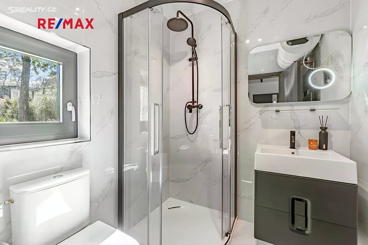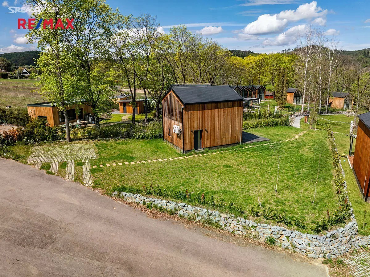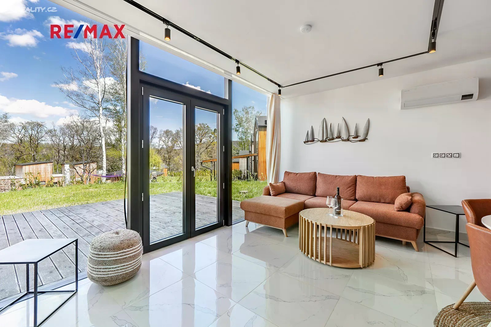 V exkluzivním zastoupení majitele bych vám ráda nabídla na prodej luxusní a plně vybavenou klimatizovanou dvoupodlažní chatu o dispozici 3+kk, která se nachází v malebné lokalitě těsně u vodní nádrže Slapy, v atraktivní obci Oboz. Součástí této unikátní nemovitosti je pozemek o rozloze 383 m², včetně dvou vyhrazených parkovacích míst přímo u objektu. Objekt byl dostavěn v roce 2024 a je součástí projektu Green Resort Slapy, který harmonicky propojuje moderní architekturu s přírodou. Projekt zahrnuje 15 rekreačních chat a 6 apartmánů + kavárnu. V přízemí chaty se nachází zádveří s šatní skříní, vybavený elegantní kuchyňský kout spojený s prostorným obývacím pokojem, vhodným pro společenské chvíle i relaxaci a moderní koupelna se sprchovým koutem. Ve druhém podlaží se nachází dvě útulné ložnice, což zajišťuje dostatek soukromí a pohodlí. Z každé místnosti se vám dostane překrásného výhledu do přírody. Interiér byl navržen velmi vkusně, elegantně a prakticky. Použité materiály kombinují přírodní dřevěný obklad fasády, velkoformátová okna na čelních stranách a střechu pokrytou kvalitním bonnským šindelem. Objekt je možno využívat víkendově, pro dlouhodobé relaxační účely nebo je možné chatu využívat k investičním účelům. Koupání je vzdálené jen pár kroků. Obec Oboz je malebnou vesnicí ve Středočeském kraji, nacházející se pouhé 3,5 km severozápadně od obce Nalžovice, v blízkosti vyhledávané vodní nádrže Slapy. Tato lokalita je ideálním místem pro milovníky přírody a vodních sportů. Slapy jsou perfektním místem pro koupání, rybaření, plachtění a další vodní aktivity. Okolní lesy a stezky jsou skvělé pro pěší turistiku a cykloturistiku. Tato jedinečná chata představuje ideální volbu pro ty, kteří touží po klidném a luxusním místě k odpočinku, s bohatými možnostmi pro aktivní trávení volného času v srdci přírody. Pro více informací či domluvení prohlídky mne neváhejte kontaktovat. Budu se těšit.
