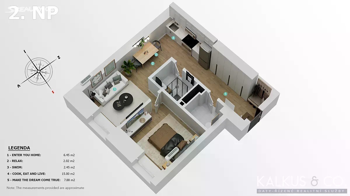 upozornění: bydlení v centru může být návykové : )! Pronajmeme nový, dobře dispozičně vyřešený byt 2+kk v rezidenčním projektu Casa Elis na Eliščině nábřeží. Jednotka s podlahovou plochou cca 34 m2 se nachází ve 2. nadzemním podlaží z pěti, v historické budově s výtahem a je orientována na východ s okny do klidného dvora. (K dispozici máme cca 10 jednotek dispozice 1+kk a 2kk, pro více info volejte prosím makléře) Byt se pronajímá kompletně zařízený - stačí se nastěhovat. “A boutique apartment in the heart of the city. Just steps from the river - designed for modern living with timeless charm.” Byt právě prošel citlivou rekonstrukcí v nadstandardním provedení, které spojuje historický šarm s moderním komfortem. Výška stropů 3,2 m, dveře v plné výšce 210 cm a interiér v jemných světlých tónech dodávají prostoru vzdušnost, eleganci a klid. Každý detail byl promyšlen - od dřevěných podlah a špaletových oken s trojsklem až po vestavěné skříně a kuchyň až do stropu. Podlahové vytápění zajišťuje příjemné teplo, v létě pak komfort doplní klimatizace a elektricky ovládané stínění. Vybavení: - dřevěné podlahy - teplovodní podlahové vytápění - klimatizace - špaletová okna s trojsklem - interiérové dveře Sapeli (výška 210 cm) - vestavné skříně a kuchyně až do stropu - podomítkové sprchové baterie - elektricky ovládané stínění oken Součástí zařízení je kompletně vybavená kuchyně včetně indukční desky, trouby, myčky, lednice s mrazákem a granitového dřezu. Ložnice je vybavena dvoulůžkem (160 cm) s nočními stolky a ložním prádlem, v obývací části je rozkládací pohovka, Smart TV, jídelní set pro dvě osoby. K dispozici je pračka se sušičkou, sklep a vysokorychlostní internet. Lokalita Casa Elis se nachází v historickém centru Hradce Králové - jen 3 minuty od pěší zóny s kavárnami, 4 minuty od parku Žižkovy sady a 5 minut od Velkého náměstí s restauracemi a gastro zahrádkami. Parkování je možné přímo před domem, nebo v parkovacím domě RegioCentrum v budově Krajského úřadu (200 m). - nájemné činí 19 500 Kč; - zálohové platby jsou cca 4 000 Kč / měs.; - vratná kauce je 2 x nájemné; - provize RK je 1 x nájemné; Pronájem této nemovitosti zajišťuje kvalifikovaný realitní makléř - certifikace ISO 17024, certifikační ústav VŠE Praha. Číslo certifikátu 238/2020.