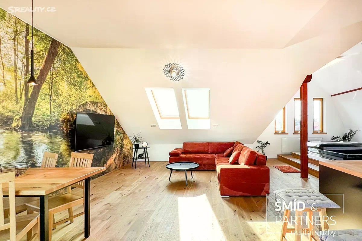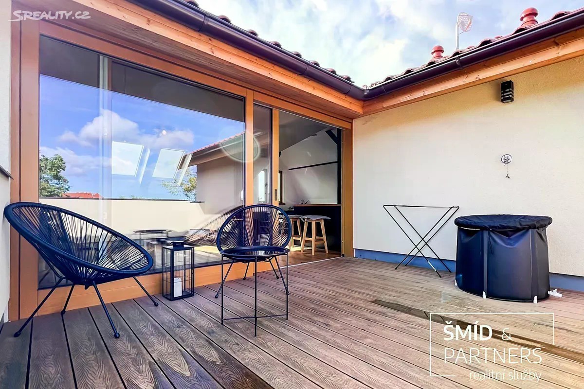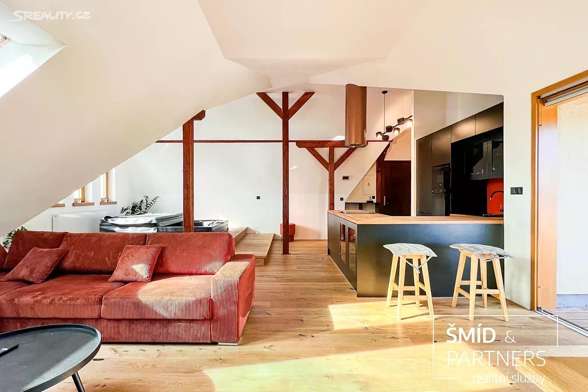Dovoluji si Vám nabídnout nadstandardní byt v Kolíně Zálabí, o velikosti 82 m2 a terasou 20 m2. Tento podkrovní byt je luxusně vybaven moderní kuchyní, vířivou vanou, velkou terasou, prostorným obývacím prostorem, saunou a zahradou, která je k dispozici všem vlastníkům domu. Kuchyň je vybavena troubou, mikrovlnnou troubou, lednicí s mrazákem, indukcí a myčkou. Ve spolupráci s architektkou zde vnikl příjemný prostor k bydlení a zároveň místa pro relaxaci. Z terasy je výhled na zahradu, v jejíž zadní části je k dispozici pergola. Díky stromům a vyšším plotům zde můžete strávit čas v poklidu a relativně v soukromí. Byt je kompletně vybaven nábytkem, včetně televize, pračky a sušičky. Dřevo, které je zde všude zakomponované a jako použitý materiál, vč. podlahy a eurooken, hraje hlavní roli. Dodává bytu příjemný a teplý dojem. Celkově byl při rekonstrukci domu, která proběhla před dvěma lety, kladen důraz na kvalitu použitých materiálů. Vytápění je zde pomocí tepelného čerpadla na principu vzduch - voda, tudíž slouží i pro ohřev vody. Náklady na topení, vodu a elektřinu jsou odvozeny od spotřeby za vířivou vanu, při rozumném používání cca 5.000,- Kč. Nábytek je v ceně bytu. Nyní se pracuje na založení SVJ, papírová forma je již připravena, jedná se pouze o doladění s úřady. Toto bydlení je vhodné pro ty z Vás, kteří nechtějí bydlet v panelovém domě a ocení ke svému bydlení v bytě výhodu relaxačního prostředí i pobyt na zahradě, V centru Kolína jste svižnou chůzí za 10 min. Pokud Vás nabídka zaujala, kontaktujte mne, ráda Vás bytem a zahradou provedu. S financováním Vám můžeme pomoci.