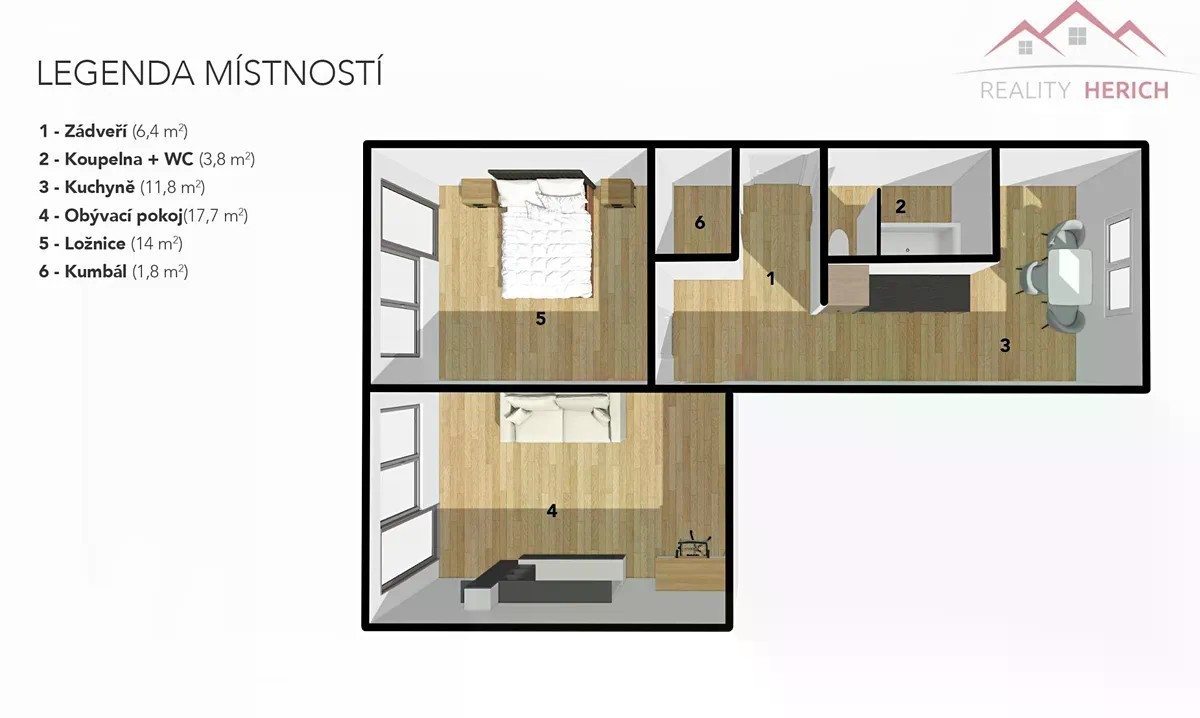 Pronájem bytu 2+1 65 m² Kundratická, Chomutov