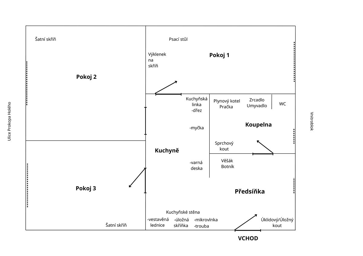Dovoluji si Vám nabídnout k pronájmu pečlivě udržovanou bytovou jednotku o dispozici 3+kk, a výměře 55,30 m2, která se nachází na adrese Prokopa Holého 889/27 v Lovosicích. Bytová jednotka je ve zvýšeném přízemí cihlového domu. K domu náleží i travnatá plocha, jenž se dá použít k odpočinku, případně si zde mohou hrát děti. Bytový dům je nově zateplen i zastřešen a energetická náročnost budovy je C. Dům se nachází velmi blízko centra Lovosic, dále je poblíž supermarket, vlakové a autobusové nádraží, mateřská školka, dětské hřiště a v neposlední řadě krytý bazén. Nájezd na dálnici D8 směr Praha/Ústí n. Labem je vzdálený zhruba 5 minut jízdy. Veřejné parkování je možné přímo u domu nebo v Žižkově ulici. Bytová jednotka prošla před 16 lety rekonstrukcí, a je ve velice dobrém stavu. Ve dvou místnostech jsou zachovalé parketové podlahy a v jedné plovoucí podlaha. V kuchyni, koupelně a v předsíni je dlažba. Byt je nabízen částečně vybavený. Ve výbavě najdete kuchyňskou linku s myčkou nádobí, sklokeramickou varnou desku, elektrickou troubu, mikrovlnnou troubu a lednici s mrazákem. V koupelně pak automatickou pračku, sprchový kout a WC s umyvadlem. V koupelně se také nachází plynový kotel, zajišťující vytápění bytu a ohřev vody, jenž umožňuje korigovat vytápění a ohřev dle uvážení nájemce. V bytě se již nachází dvě velké skříně kam si může potenciální nájemce uložit své věci a také psací stůl. Dále jako úložný prostor slouží botník a policové skříňky. K bytové jednotce náleží i laťková sklepní kóje. Možnost nastěhování od 1.1. 2026 nebo po předchozí domluvě. Nájemné: 19.000,- Kč za měsíc, cena k jednání. Přepis elektřiny a plynu na nájemce. Pokud Vás byt zaujal, neváhejte mě kontaktovat ráda Vám vše ukážu osobně.