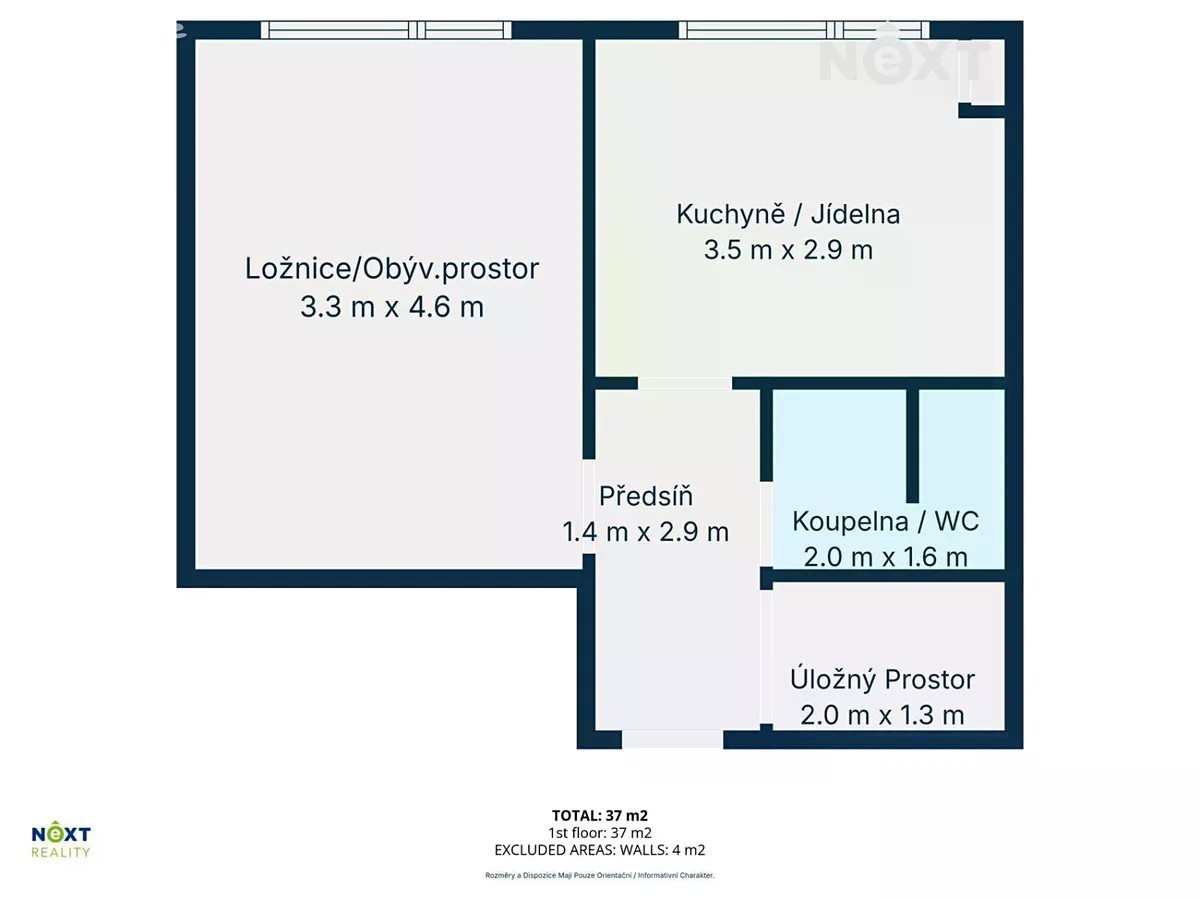 Nabízíme Vám k pronájmu slunný byt umístěný ve 4. nadzemním podlaží bytového domu v centru Jilemnice. Dispozice 1+1 o celkové výměře 37 m² zahrnuje kuchyň s vařičem a troubou, ložnici, koupelnu, předsíň a prakticky řešený odkládací / šatní prostor. Byt je čerstvě vymalovaný, položeno nové lino, renovována kuchyňská linka - je tedy připraven k okamžitému nastěhování. Výhody a vybavení domu • Vlastní kotelna s tepelnými čerpadly - výrazné snížení nákladů na vytápění a ohřev vody. Výkon kotelny se automaticky přizpůsobuje počasí a aktuální potřebě domu, vytápění probíhá kontinuálně. • K dispozici je sklepní kóje. • V domě je společná kolárna a sušárna. Byt se nachází v centru Jilemnice: • hned u Tesca, • přímo před domem mateřská školka, • pár minut chůze na autobusové nádraží, • v docházkové vzdálenosti městské služby, obchody, restaurace apod. Pro milovníky sportu a přírody je kousek od domu sportovní a rekreační areál Hraběnka, který nabízí běžecké tratě, biatlonový areál, inline okruhy, cyklotrasy i příjemné procházky v přírodě. Nájemné a podmínky: • nájemné 10 000 Kč za měsíc • zálohy na energie a vodu 4 000 Kč / měsíc •kauce: 1 měsíční najem (bez záloh) • provize RK: 1 měsíční nájem + DPH Pokud hledáte příjemné bydlení v centru Jilemnice s veškerou občanskou vybaveností nadosah, neváhejte nás kontaktovat pro více informací nebo domluvení prohlídky. Těšíme se na Vaši odpověď a věříme, že Vás tato nabídka osloví. Pro komunikaci uvádějte evidenční číslo zakázky N115064.