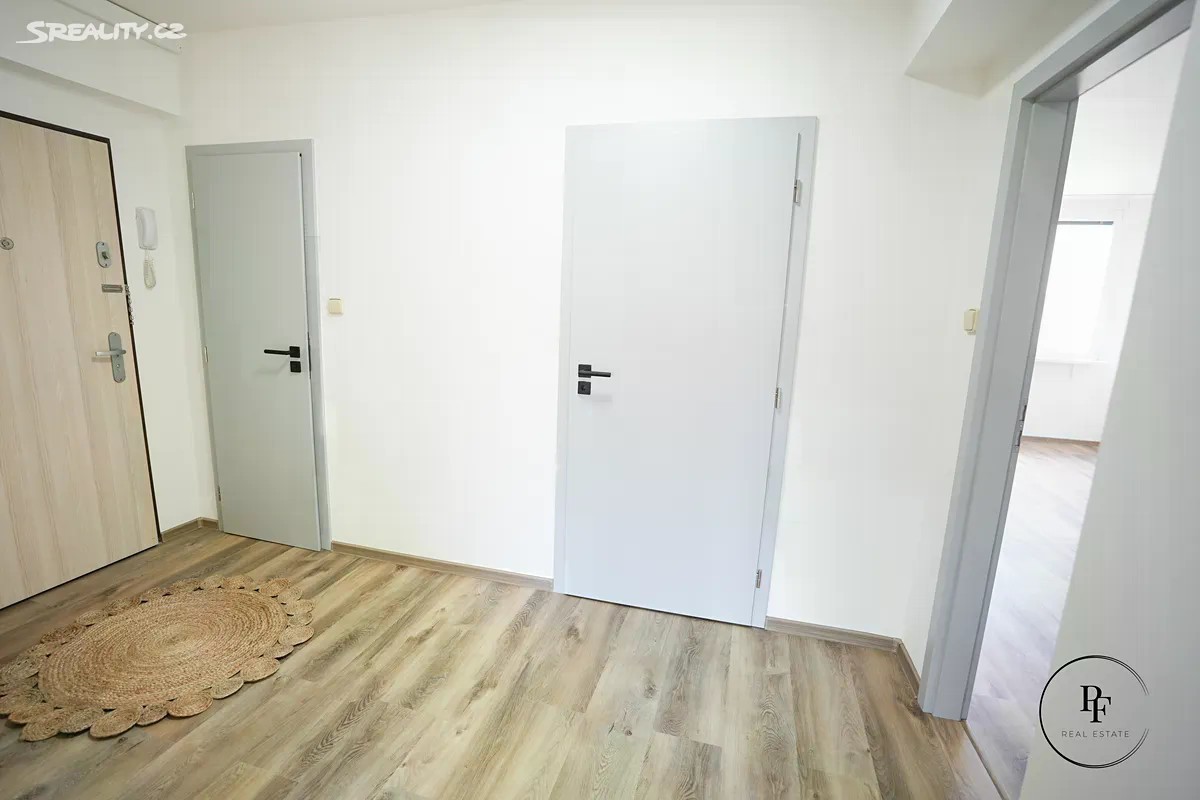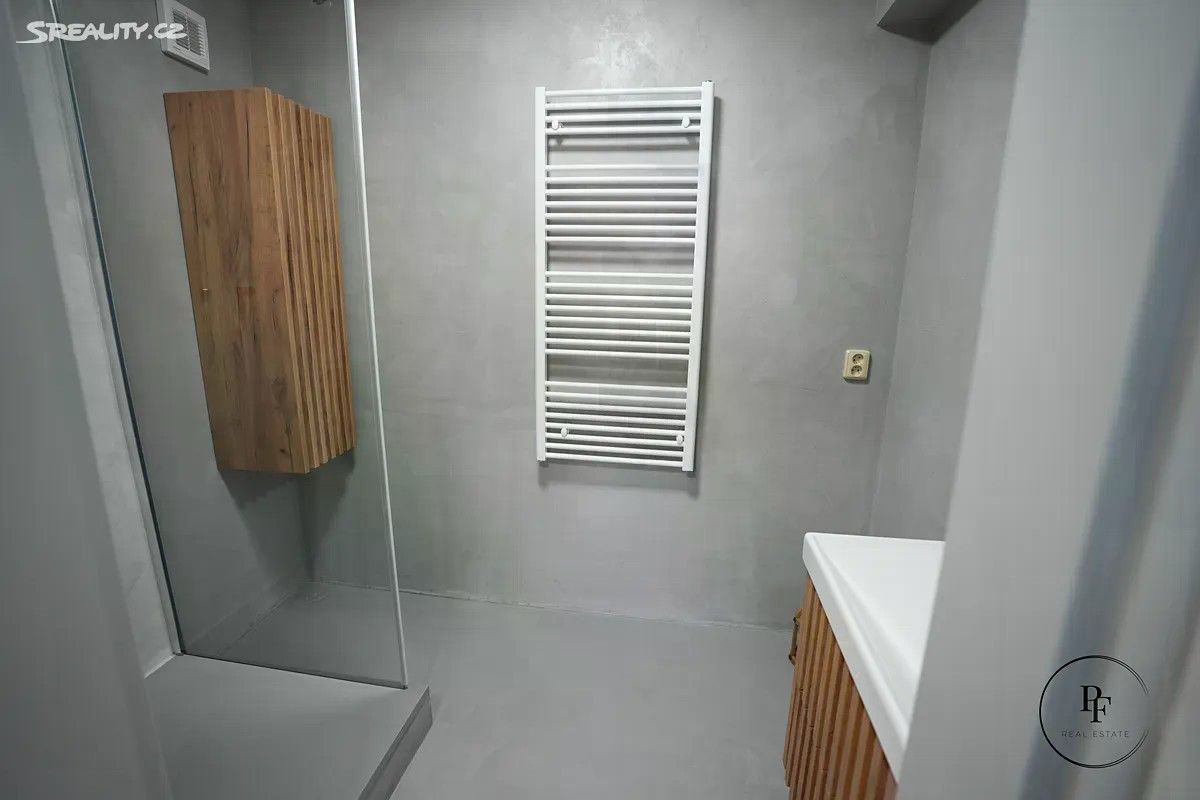 K pronájmu nabízím prostorný byt 3+1 o podlahové ploše 87 m² v ulici 17. listopadu v Mladé Boleslavi. Byt se nachází v 5. patře domu s výtahem, prošel kompletní nákladnou rekonstrukcí a čeká na své první nájemníky. Dispozici tvoří dvě neprůchozí ložnice, obývací pokoj se vstupem do kuchyně, prostorná chodba, moderní koupelna a samostatné WC. V celém bytě jsou nové vinylové podlahy v dekoru dřeva, šedé interiérové dveře s černým kováním a čistě bílé stěny, takže si interiér snadno doladíte vlastním nábytkem. Kuchyň je navržena v kombinaci betonové šedé a přírodního dřeva, má velkorysou pracovní plochu, vestavěnou varnou desku, troubu, digestoř a vysokou lednici. V koupelně je prostorný sprchový kout a celý prostor je moderně stylizovaný do betonové stěrky, která je velmi praktická na údržbu a zároveň působí elegantně a nadčasově. Doplňuje ji designová dřevěná skříňka pod umyvadlem a bílé žebříkové topné těleso. Z obývacího pokoje je vstup na zasklenou lodžii s příjemným výhledem do okolní zástavby a zeleně. Lokalita nabízí kompletní občanskou vybavenost v docházkové vzdálenosti, v blízkosti jsou obchody, školy, školky, zdravotní služby i MHD. Byt je volný od 1. 12. a je ideální pro ty, kteří hledají moderní a nadstandardně zrekonstruované bydlení v Mladé Boleslavi.