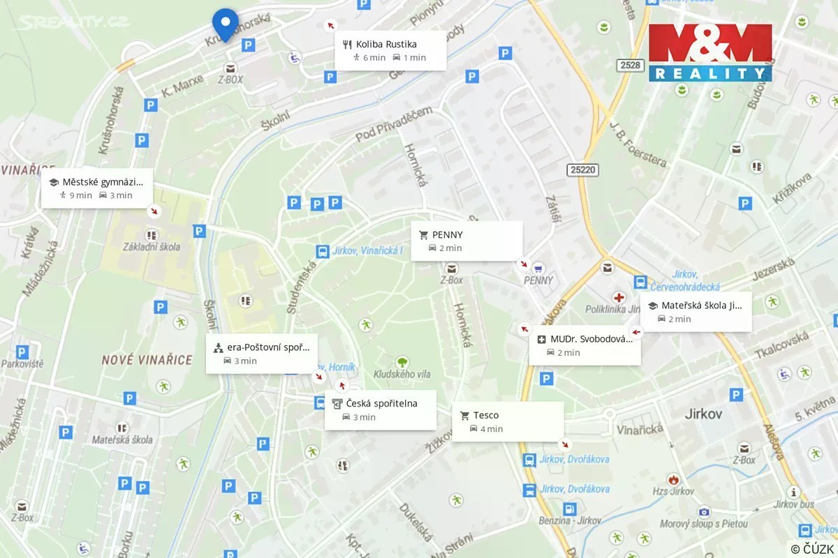 Poloha na mapě, užitečná místa a trasy