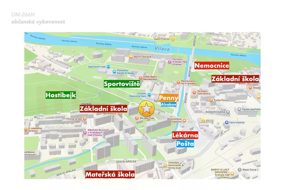 Byt i dům po rekonstrukci. Západně orientovaná zasklená lodžie. Sklepní kóje. Skvělá občanská vybavenost a dopravní dostupnost. Pro vlastní bydlení nebo k dalšímu pronájmu. Předmětem prodeje je byt o dispozici 2+kk, o rozloze 39,7 m2 (+ zasklená lodžie + sklepní kóje), který se nachází v osmém patře (9. NP) panelového domu se dvěma výtahy nedaleko centra Kralup nad Vltavou (Sídliště Hůrka). Byt sestává ze zádveří, kuchyňského koutu, obývacího pokoje se vstupem na zasklenou lodžii, dále ložnice a koupelny se sprchovým koutem a toaletou. Celý byt je orientován na západ, s širokým výhledem a vysokou mírou soukromí. Podlahy jsou kryté kombinací laminátové plovoucí podlahy a keramické dlažby. Vytápění je ústřední dálkové. Navíc je k dispozici plyn a vysokorychlostní připojení k internetu a kabelová televize (Vodafone / O2). Provozní náklady jsou příznivé a činí 3.717 Kč měsíčně + elektřina (vyúčtování 2024). Byt je ve velmi dobrém, pečlivě udržovaném stavu. Dům je z většiny po rekonstrukci, která zahrnovala střechu, plášť včetně zateplení, dále okna, vstupní portály, stoupací vedení, oba výtahy a společné prostory. V docházkové vzdálenosti se nachází kompletní síť obchodů a služeb, včetně několika mateřských a základních škol, dále nemocnice, lékárna, pošta, plavecký bazén, řada restaurací, výdejní místa zásilkových služeb, a také přírodní památka Hostibejk. Dopravní dostupnost je vynikající, a to osobní i veřejnou dopravou (22 min. autem metro C Letňany / 36 min. vlakem metro C Nádraží Holešovice). Celkově se jedná o skvělou příležitost ke koupi dostupného bytu pro vlastní potřebu nebo k dalšímu pronájmu (poptávka v místě je dlouhodobě stabilní), s vynikající perspektivou výnosu a zhodnocení. Kompletní sada fotografií ve vysokém rozlišení a dokumentace ke stažení (půdorys s rozměry místností, předpis poplatků, PENB) jsou k dispozici na webu realitní kanceláře. Více informací sdělí makléř.