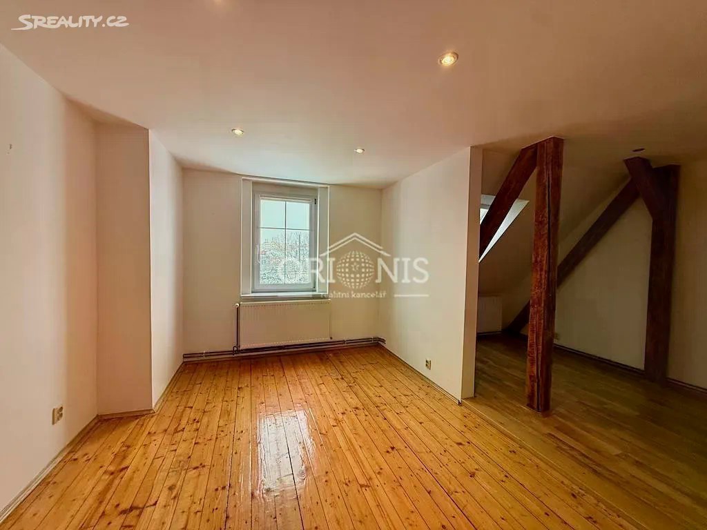 Nabízíme Vám pronájem podkrovního bytu 3+1, o rozloze 87m2, v rodinném domě ulice Rooseveltova v Chomutově. Byt se nachází v podkroví rodinného domu. Dispozice bytu : kuchyně propojená s obývacím pokojem, ložnice, dětský pokoj, předsíň s vestavěnou skříní. prostorná koupelna se sprchovacím koutem a vanou a WC. Cena nájmu činí 15.000,- Kč a je uvedena bez služeb a energií, Elektřina činí cca 1500,- Kč + voda studená 450,- Kč pro jednu osobu + plyn cca 2.000,- Kč. Vytápění bytu je vlastním plynovým kotlem. Nutná vratná kauce v částce 15.000,- Kč + provize RK 15.000,- Kč. Další informace Vám rádi poskytne. Byt je volný od 1.12.2025