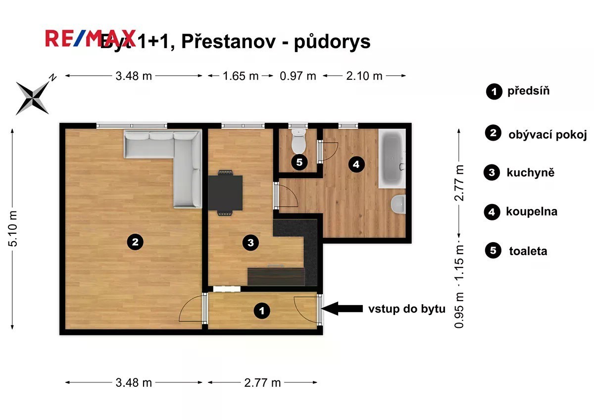Bydlení v paneláku vás neláká? V Přestanově, nedaleko krajského města Ústí nad Labem, nabízíme na prodej bytovou jednotku se zahradou. Byt o dispozici 1+1 a celkové ploše 48 m2 se nachází ve druhém patře cihlového domu, v němž jsou 4 bytové jednotky. K bytu náleží zahrádka za domem o výměře 46 m2. Byt i zahrada jsou v osobním vlastnictví. Bytová jednotka má výměru 35 m2. K bytu náleží ještě polovina patrové kůlny za domem. Celková užitná plocha je tak 48 m2. Byt je v dobrém stavu, obytná ložnice má výměru téměř 18 m2, kuchyně s předsíní 11 m2 a prostorná zděná koupelna se samostatnou toaletou 6 m2. Všechna okna jsou plastová s izolačními dvojskly. Rozvody vody jsou v plastu, elektřina je vedena v mědi. V bytě je ústřední vytápění, zdrojem vytápění je elektrokotel, ohřev vody je zajištěn elektrickým bojlerem, k vaření slouží dvouplotýnková sklokeramická varná deska. Příčka mezi obytnou ložnicí a kuchyní je provedena ze sádrokartonu. Podlahy jsou dřevěné, je na nich položeno PVC. Měsíční náklady na provoz: elektřina 5000,- Kč (vytápění, ohřev vody, vaření a spotřebiče - lednice, pračka), voda cca 500,- Kč a fond oprav. Částka do fondu oprav se stanovuje podle plánovaných oprav, aktuálně činí 1000,- Kč. Dům má opravenou střechu; nová krytina, tzv. kanadský šindel, byla položena před dvěma lety. Sklep o výměře 66 m2 a půda (97 m2) jsou společnými prostorami. Obvodová zeď domu orientovaná k severu je zateplena polystyrenem. Bytové jednotky byly v domě vymezeny dokumentem Prohlášení vlastníka v roce 2010 a plocha zahrady byla rozdělena tak, aby ke každému ze 4 bytů patřila část zahrady. Pozemky zahrady náležející k bytům jsou odděleny geometrickým plánem a každý z nich je zapsán samostatně v katastru nemovitostí. Obec Přestanov leží pod Krušnými horami v okrese Ústí nad Labem, v polovině cesty autem mezi městy Ústí nad Labem a Teplice. Obec je dostupná autobusovou dopravou, do Ústí nad Labem jezdí MHD (autobusová linka 81). K dálnici D8 je to od domu 5 minut cesty autem. Za domem je dětské hřiště, v dosahu pěšky fotbalové hřiště a tenisové kurty. V blízkém okolí stojí za zmínku rybníky u Chlumce, jezero Milada či lanová dráha z obce Krupka na Komáří vížku. Máte-li zájem o prohlídku či bližší informace, kontaktujte makléře nabídky. Nabízíme bezplatné poradenství ohledně financování koupě. V případě více zájemců prodej nejvýhodnější nabídce.
