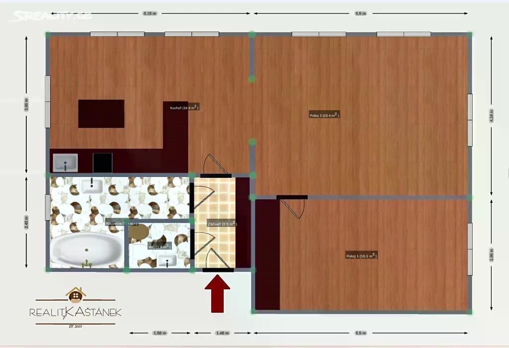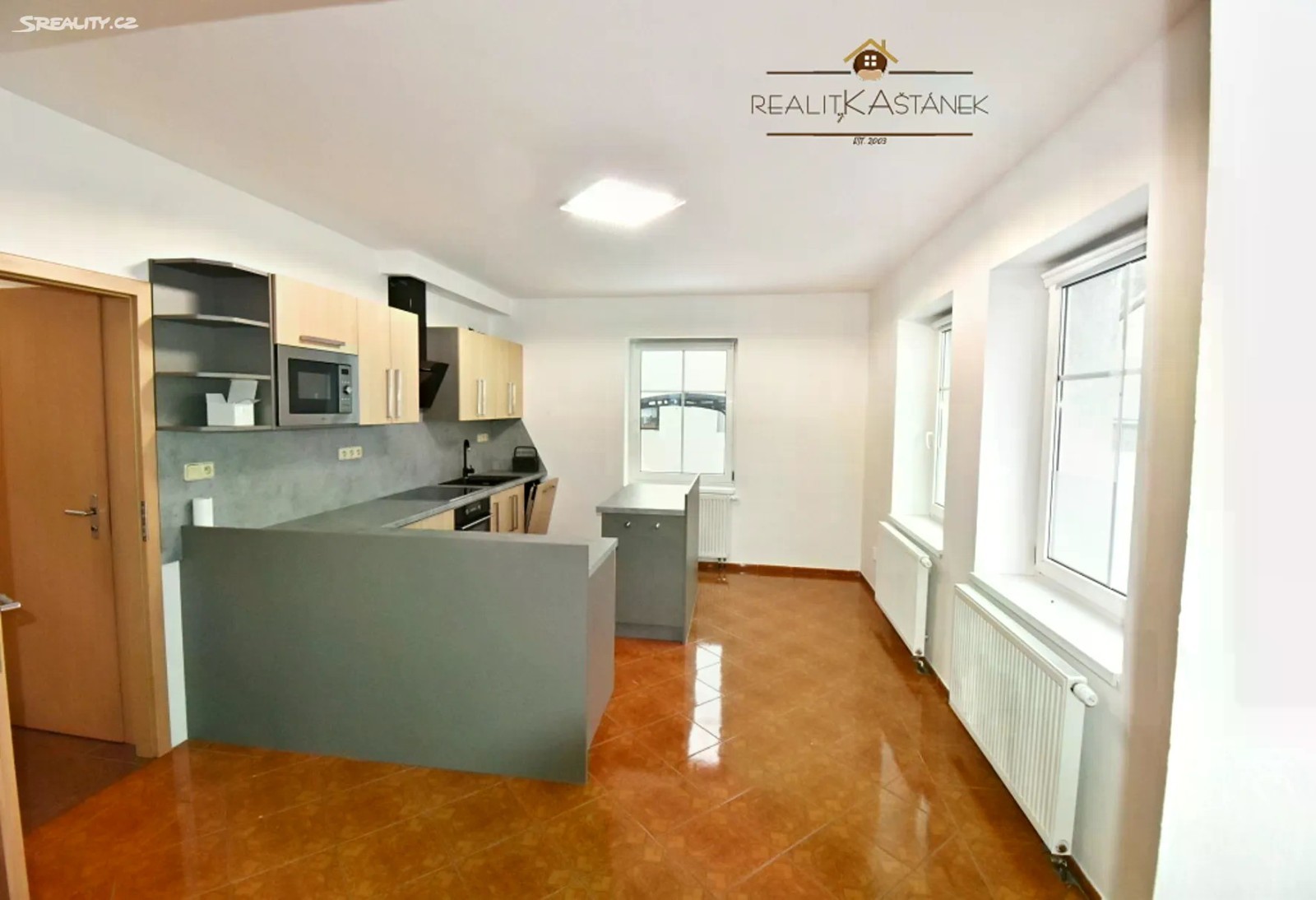 Prostorný byt 2+1 s terasou, ul. Bezručova, Turnov. TECHNICKÉ ATRIBUTY: 68 m2 | 2 pokoje + prostorná kuchyň | 2. NP | společná terasa PŘÍSLUŠENSTVÍ | VYBAVENÍ: Plastová okna, plovoucí podlahy + dlažba, rohová kuchyňská linka na míru s pracovním pultem, indukční varná deska, horkovzdušná trouba, vestavěná myčka a mikrovlnná trouba. Koupelna s vanou, samostatné wc + bidet a umyvadlo. Dostatek úložného prostoru: vestavěné skříně. INFORMACE K DOMU | NEMOVITOSTI | ZAHRADĚ: Zateplený dům. Samostatné měření médií, vlastní plynový kotel pro bytovou jednotku. K využití prostorná společná terasa ve 2. np domu. K dispozici garáž za příplatek. LOKALITA: Umístění nemovitosti nabízí strategickou polohu vůči komunikacím směr Mladá Boleslav, Železný Brod či Liberec. Dům je situován v rušné části města. Veškerá občanská vybavenost se nachází v pěší vzdálenosti. VOLNÉ: ihned. Preference majitele bez domácích zvířat. CENA: Nájemné: 17.000,- Kč. Služby: 1.000,- Kč voda/2osoby + el. a plyn na nájemníka. Jistota: 25.000,- Kč + provize RK. DOPORUČENÍ PRO SJEDNÁNÍ PROHLÍDKY: Do e-mailu adresovanému kanceláři napište Vaše jméno, telefon a e-mail. Nezapomeňte na identifikaci nemovitosti - adresa popř. číslo zakázky. S konkrétním termínem prohlídky se Vám co nejdříve ozveme.