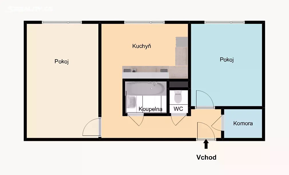 Nabízíme k prodeji byt s dispozicí 2+1, plochou 53,60 m2, ve vyhledávané lokalitě Chomutov Horní Ves. Byt je zachovalý, v původním stavu, připravený k běžnému užívání nebo k rekonstrukci. Dispozice je řešena dvěma pokoji se samostatným vchodem, prostornou kuchyní, do které se pohodlně vejde i velký jídelní stůl, a která tvoří spolu s koupelnou a WC střed bytu. Výhodou je také velká komora umístěná přímo v prostoru bytu. Podlahy: kuchyň a pokoje - plovoucí podlahy, vstupní chodba - keramická dlažba, koupelna a WC - linoleum. Okna jsou plastová a samozřejmostí je zateplený dům (energetická třída domu C - úsporná) Nemovitost je v družstevním vlastnictví, což zaručuje slušné spolumajitele a sousedy v domě. Lokalita patří v Chomutově mezi vyhledávané adresy, vzhledem k nedalekému Bezručovo údolí s pěšími, cyklistickými trasy, možností výletů a procházek. Veškerá občanská vybavenost je přímo ve čtvrti, vč. lékařů, škol, obchodů a restaurací. Byt je volný, k dispozici. Rádi vám sdělíme další informace nebo zajistíme prohlídku.