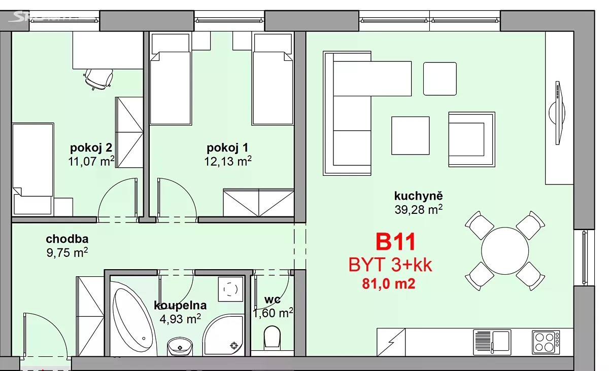 Bytová jednotka 3+kk - družstevní podíl Nabízíme jedinečnou příležitost za unikátní cenu 65.000,- Kč / m2. Jedná se o bytovou jednotku 3kk ve 4NP budovy. V budově se nachází lékárna a kavárna a jedno podlaží ordinací. V sousedství je 8 nových bytových domů. Budova je těsně před dokončením. První splátka je ve výši 2.584.050,- Kč. Zbytek kupní ceny je řešený výhodným úvěrem družstva. Dokončení projektu je 6/2026 Kolaudace a předání je 7/2026 Nastěhování je 8/2026