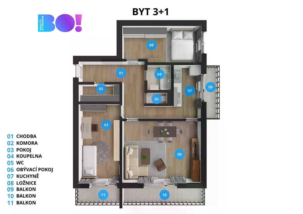 Byt na ulici Lidická v Třinci nabízí promyšlenou a velmi praktickou dispozici, která potěší každou rodinu. Na 68 m² užitné plochy najdete tři samostatné pokoje, ideální pro plnohodnotné bydlení bez kompromisů. Velkou předností bytu je jeho umístění v centru města, kde je vše potřebné v pěší vzdálenosti. Byt prošel částečnou rekonstrukcí a velkým plusem je koupelna stará teprve 2 roky. Nachází se v 8. nadzemním podlaží, díky čemuž si užijete klid, dostatek světla a opravdu dechberoucí výhledy na okolí. Pokoje jsou orientovány na klidnou stranu mimo hlavní silnici, díky čemuž je byt tichý a nerušený provozem. Třešničkou na dortu jsou hned tři balkony - přístupné z obývacího pokoje, dětského pokoje i kuchyně. Dokonalé místo pro ranní kávu, večerní relax nebo jen nadechnutí čerstvého vzduchu. Ideální volba pro rodiny, které hledají prostor, soukromí i komfort na jednom místě.