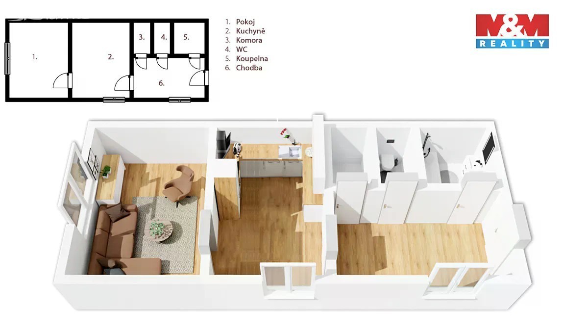 Nabízíme k prodeji byt o dispozici 2+kk, který se nachází v klidné obci Brněnec. Jedná se o byt situovaný v původním historickém domě, jenž dříve sloužil jako statek - ideální volba pro ty, kteří hledají bydlení s charakterem a možností úprav podle vlastních představ. Dispozice bytu je rozdělena na větší obývací pokoj, druhý pokoj spojený s kuchyní, vstupní chodbu, koupelnu, samostatné WC a komoru. Součástí prodeje je také místnost o rozměrech 26 m² pod bytem. Tento prostor lze výborně využít jako dílnu, úschovnu kol či motorky nebo pro jiné hobby účely. K bytu náleží půda a část pozemku v zadním traktu domu, kde je zřízena zahrada - místo pro relax, pěstování či posezení. Byt je v původním stavu, což představuje skvělou příležitost pro rekonstrukci dle vlastního vkusu a vytvoření moderního, útulného domova. Nemovitost nabízí široký potenciál - jak pro vlastní bydlení, tak pro investiční účely. V případě zájmu rádi poskytneme více informací či domluvíme prohlídku.