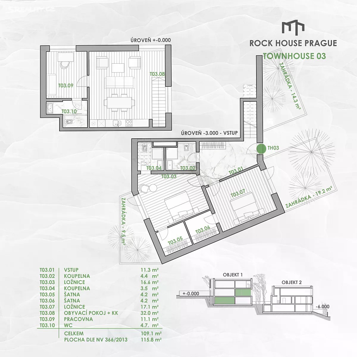 K prodeji nabízím mezonetovou bytovou jednotku typu townhouse se samostatným vstupem, umístěnou v nově vznikajících viladomech projektu Rock House Prague. Byt o dispozici 4+kk má podlahovou plochu 110,10 m². K jednotce dále náleží předzahrádky o celkové výměře 43 m² a sklep. Projekt je situován v jedinečné lokalitě Prahy 5 - Hlubočepy, v bezprostřední blízkosti přírodní rezervace Prokopské údolí. Díky poloze na mírně svažitém terénu je harmonicky zasazen do okolní zeleně a obklopen nízkopodlažní rezidenční zástavbou, která zajištuje klidné a příjemné prostředí. Komplex tvoří dva třípodlažní viladomy se šesti atypickými jednotkami, navrženými renomovaným architektonickým studiem. Originální architektonické prvky dodávají projektu moderní a nadčasový charakter. Součástí areálu jsou zatravněné plochy a zeleň určená k odpočinku. Bytové jednotky se prodávají v provedení White Walls - dokončená hrubá stavba s omítkami, podlahovým vytápěním a připravenými rozvody. Klient má možnost dokončení interiéru podle vlastních představ. Technologie a vybavení - vytápění a ohřev vody zajištěny tepelnými čerpadly vzduch-voda ve společné kotelně - v bytech teplovodní podlahové topení + elektrické žebříky v koupelnách - každá jednotka má vlastní měření a regulaci Projekt je koncipován jako nízkoenergetický. Termíny - hrubá stavba dokončena - kolaudace plánována na 1. čtvrtletí 2026 Lokalita - přímý kontakt s přírodou: Prokopské údolí, Červený lom, Chuchelský háj - ideální pro procházky, cykloturistiku i relaxaci - výborná dopravní dostupnost - zastávka MHD přímo u domu; autem rychlé spojení přes Barrandovskou radiálu na Městský okruh - kompletní občanská vybavenost v okolí K bytovým jednotkám je možné dokoupit parkovací stání. Při uzavření kupní smlouvy do konce roku získáte od developera bonus - návrh interiéru. Rock House Prague propojuje komfort městského života s klidem přírody. Objevte jedinečnou lokalitu - ráda Vám projekt osobně představím. Technické provedení - standardy Konstrukce - Základová konstrukce: budova je založena na železobetonové zateplené desce. - Svislé konstrukce: obvodové a vnitřní stěny jsou ze směsi železobetonu a cihelných bloků. - Zateplení a fasáda: obvodové stěny jsou zateplené a opatřené dekorativní fasádní omítkou. Okna - Instalována okna s hliníkovými rámy a trojitým izolačním zasklením (trojsklem) s nadstandardními tepelně-izolačními vlastnostmi. Vytápění a ohřev vody - Ve všech bytech je instalováno teplovodní podlahové vytápění. - Zdrojem tepla a teplé vody jsou tepelná čerpadla. Elektroinstalace - Kompletní elektroinstalace s přípravou pro všechny běžné domácí spotřebiče a technologie. - Připravené rozvody pro osvětlení, kuchyň, koupelnu a datové sítě. Vnitřní úpravy - Vnitřní stěny jsou omítnuty. - Podlahová skladba je připravena pro finální povrchy, proveden suchý betonový potěr. Instalace Kompletní skryté instalace - voda, kanalizace, topení i elektro - jsou integrovány do konstrukcí bytů.