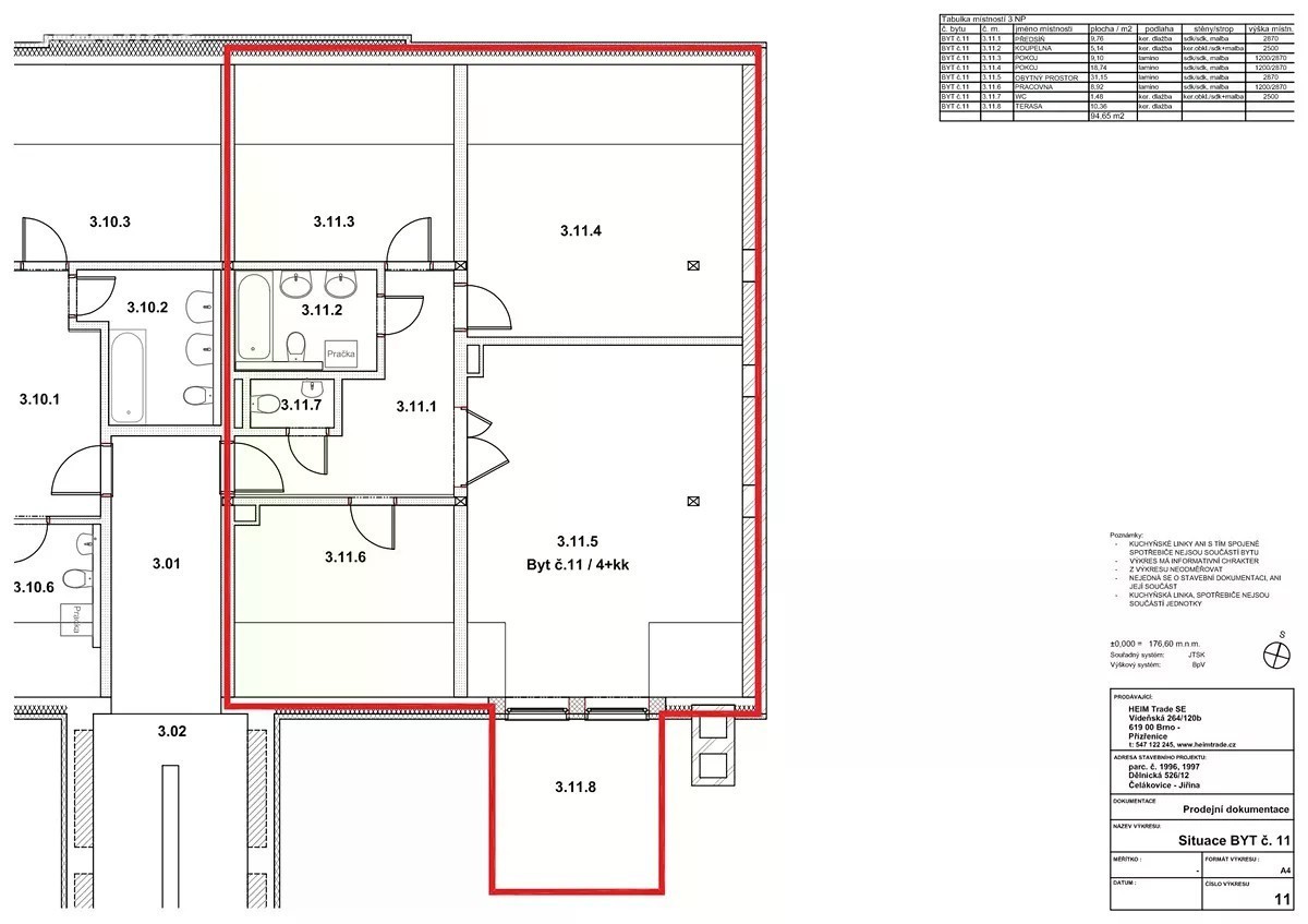 Nabízíme Vám podkrovní byt 4+kk, 97,8 m² s terasou 11,8 m² ve zrekonstruované prvorepublikové vile v Čelákovicích. Byt se nachází ve 3. nadzemním podlaží. Ze vstupní chodby se vstupuje do všech místností, tj. do obývacího pokoje, který dává prostor pro promyšlené zařízení interiéru, propojující kuchyňskou část a odpočinkovou zónou a zároveň navazující na terasu orientovanou na jih, dále do ložnice a dvou pokojů, které se nabízejí jako dětské, a pak ještě do prostorné koupelny s vanou, dvěma umyvadly a WC a naposledy do samostatného WC. Bytový dům Dělnická 12 je situován do klidné vilové čtvrti ve východní části Čelákovic v dochozí vzdálenosti 5 min od nádraží. Nabízí celkem 11 bytových jednotek umístěných ve třech nadzemních podlažích. Původně prvorepubliková vila byla citlivě rekonstruována tak, aby nabídla novým majitelům komfort moderního bydlení při zachování historických prvků původní vily. Ke každému z bytů lze koupit parkovací stání na vlastním pozemku. Čelákovice jsou atraktivní lokalita pro bydlení, podnikání i aktivní odpočinek, rozkládají se u Labe asi 27 km severovýchodním směrem od Prahy. Naleznete zde veškerou občanskou vybavenost. Nabízí nadstandardní volnočasové vyžití s řadou cyklostezek, dětských hřišť, má krásné historické centrum, ve kterém najdete spoustu možností kulturního a společenského vyžití. V červnu 2023 byla na Labi dokončena realizace přístaviště pro malá vodní plavidla. V případě zájmu nás neváhejte kontaktovat. Více informací najdete na webu projektu Bytový dům Dělnická 12. Prodej přímo od developera.