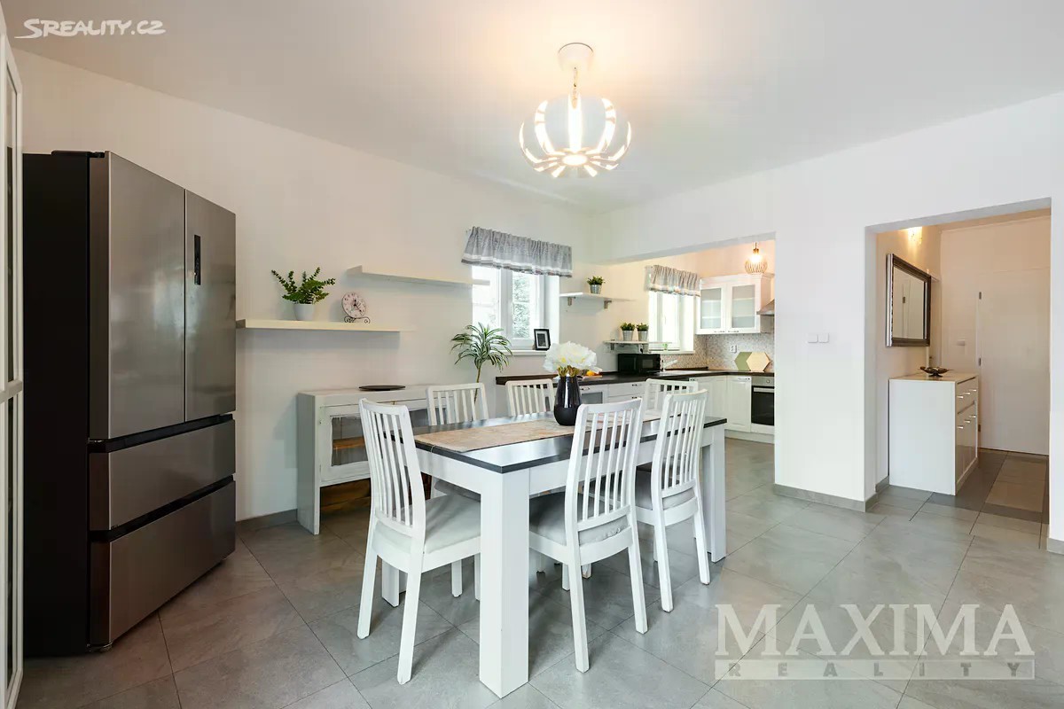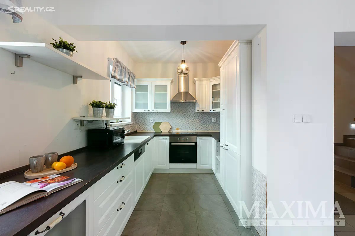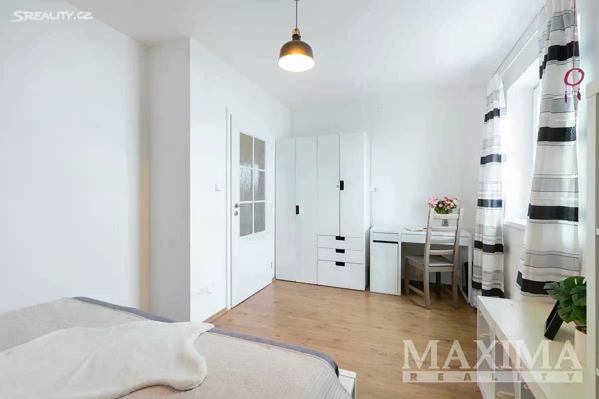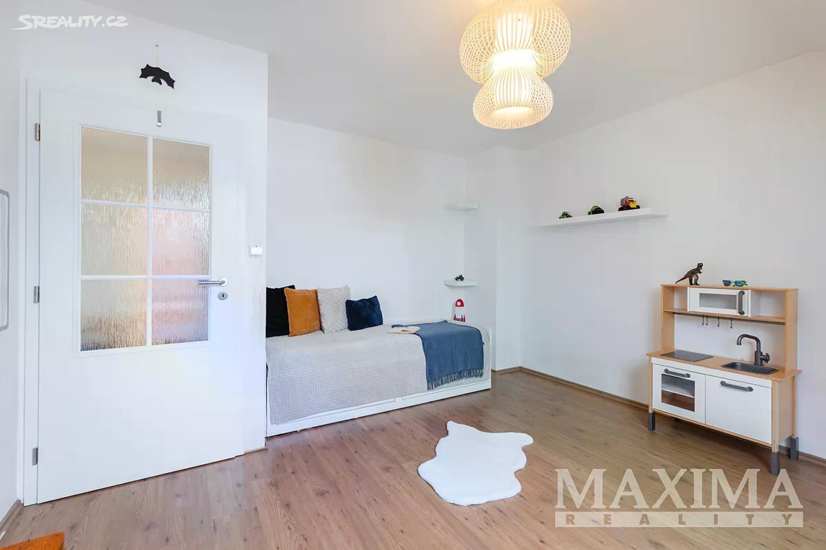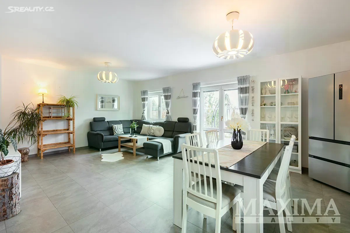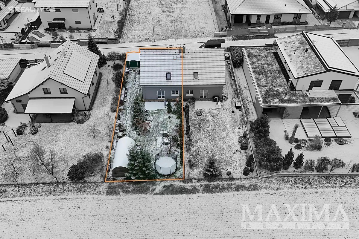 Nabízíme k prodeji prostorný a světlý byt 4+1, který se nachází v samostatné polovině novostavby domu z roku 2016. K bytu náleží vlastní zahrada o ploše 349 m2. Nemovitost je situována v klidné lokalitě s množstvím zeleně a několika rybníky v okolí. Dispozice bytu 4+1 o celkové ploše 129 m2 tvoří v přízemí obývací pokoj (31,56 m2) s kuchyní (5,83 m2) a kuchyňskou linkou, s přímým vstupem na terasu s možností posezení a výhledem do zahrady. Dále zde najdete pracovnu (5,42 m2), WC s technickou místností (3,16 m2), komoru pod schodištěm (5,78 m2) a prostorné zádveří (6,68 m2). Po schodišti se dostanete do podkroví, kde se nachází ložnice (16,89 m2), dva samostatné pokoje (13,78 m2 a 13,99 m2), praktická koupelna (10,23 m2) s vanou, sprchovým koutem, toaletou i bidetem, chodba (4,58 m2). Pro uskladnění věcí poslouží prostorná půda. Okna jsou plastová s izolačním trojsklem, v obývacím pokoji orientovaná na západ. Topení je v obou patrech podlahové - zajišťuje elektrický kotel,ohřev vody bojler. V obývacím pokoji komín - možnost instalace krbových kamen. Na udržované zahradě se nachází skleník s napojením na vodu včetně osvětlení a kůlna na nářadí, rovněž s osvětlením. Dům je napojen na obecní vodovod i kanalizaci. Parkování je možné přímo před domem pro jedno auto, další možnosti jsou na ulici. Součástí je také příprava na wallbox pro nabíjení elektromobilu. Obec disponuje dobrou občanskou vybaveností - restaurace, hospoda, školy, školky, lékařské služby, lékárna, pošta, obchody, supermarkety, restaurace či dětská hřiště. Jedná se o bezpečnou a klidnou rezidenční lokalitu. Autobusové zastávky nabízí pravidelné spoje do Prahy (Zličín, Veleslavín). Výborné je také dopravní napojení na dálnice D6 a D7, na Zličín dojedete autem za cca 15 minut. Nemovitost je možné financovat hypotečním úvěrem, s jehož vyřízením vám rádi pomůžeme. PENB: B