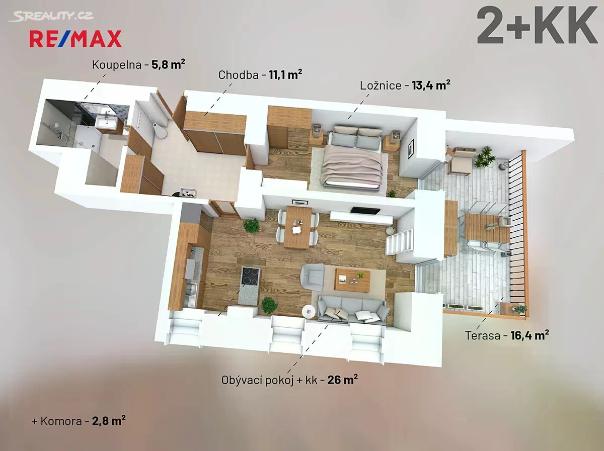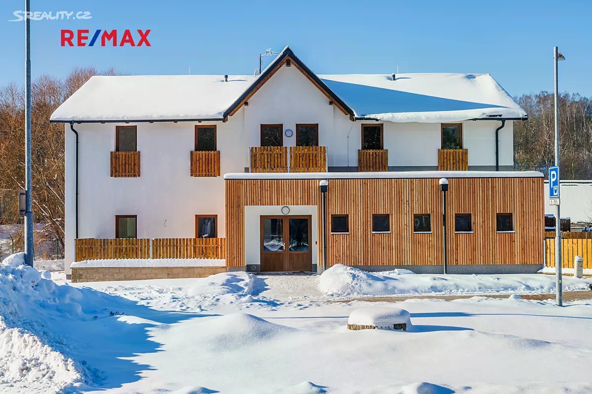 Exkluzivně vám nabízíme prostorný apartmán kompletně zrekonstruovaného objektu v centru města Svoboda nad Úpou, nacházející se ve východní části Krkonoš. Dispozice tohoto apartmánu 2kk nacházejícího se v přízemí objektu a jeho podlahová plocha a dobré členění, nabídne dostatečný komfort pro 4-5 osob. Tento apartmán je vhodný díky svému bezbariérovému přístupu také pro ty, kteří mají pohybové omezení. Značným benefitem je prostorná terasa, která rozšiřuje využitelnost v teplejších měsících pro příjemné posezení nebo grilování. V domě je pouze 7 apartmánů, každý má k dispozici vlastní park. místo s možností dobíjení elektromobilu, svou vlastní terasu a sklad.prostory. Díky skvělé poloze objektu budete mít na dosah nejmodernější a největší SKI areál v ČR - SKI resort Černá hora/Pec pod Sněžkou/Jánské Lázně, kam to máte autem pouhých pár minut, resp. 6 km, nebo se můžete na sjezdovku dopravit skibusem, který má zastávku přímo před domem. Kromě sjezdového lyžování, sáňkařské dráhy nebo téměř 70 km upravovaných běžeckých tras, si v místě můžete také užít aquapark v Jánských Lázních nebo lázeňskou kolonádu, kde se pořádají různé kulturně společenské akce. Ve Svobodě nad Úpou je k dispozici několik restaurací a obchodů, skvělá burgrárna, 8 jamkový indoor adventure minigolf, čerpací stanici, infocentrum nebo Krakonošovo muzeum a dětský koutek. I letních aktivit je zde nesčetné množství, a to pro všechny milovníky cyklistiky, sjezdaře trialových tratí, značených turistických tras, výšlapů na Sněžku, rozhleden a stezky v oblacích, zkrátka vše, co by měla aktivní dovolená zahrnovat máte nadosah. Ti z vás, kteří preferují jinou dopravu než autem, můžete využít také moderní vlakovou a autobusovou dopravu, která nijak neruší pobyt v apartmánech. Koncepce domu je od prvopočátku nastavena tak, aby dům byl nízkoenergetický a provoz apartmánů nové majitele nezatěžoval vysokými provozními náklady. K tomu přispívají moderní tepelná čerpadla, kvalitní izolace, okna s trojskly, nebo také moderní zelené střechy, které oceníte zejména v horkých letních měsících. Celkové provedení rekonstrukce je velmi zdařilé a použité kvalitní materiály a technologie odpovídají moderním trendům a požadavkům klientů. Pokud byste měli zájem o návrh designu a realizaci interiérů na klíč, jsme připraveni vám tuto službu zajistit od našich prověřených dodavatelů. Dalším benefitem pro budoucí vlastníky jsou kompletně zrekonstruované prostory v suterénu, které čekají na nové využití dle vašich potřeb. Bude jen na vás, resp. na společenství vlastníků, zda je využijete jako wellness, fitzónu, relaxační zónu s pingpongovým stolem, kulečníkem, dětským koutkem atd, nebo si pouze rozšíříte skladovací prostory ke každému apartmánu. Zdarma zajistíme výhodné financování nákupu této nemovitosti, nebo zajistíme prodej jiné vaší nemovitosti, ze které byste chtěli financovat tento nákup. Neváhejte nás kontaktovat pro bližší informace a domluvit si prohlídku apartmánů.