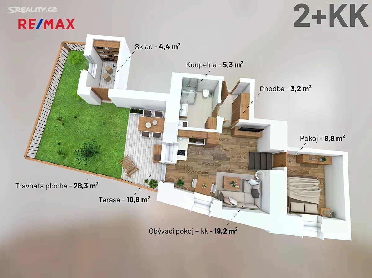 Exkluzivně vám nabízíme prostorný apartmán kompletně zrekonstruovaného objektu v centru města Svoboda nad Úpou, nacházející se ve východní části Krkonoš. Dispozice tohoto menšího apartmánu 2kk, nacházejícího se v přízemí objektu, nabídne dostatečný komfort pro 2- 4 osoby. Tento apartmán může mít po drobných úpravách bezbariérový přístup. Značným benefitem je prostorná terasa, na kterou navazuje oplocená zahrádka s vlastním vstupem a skladovacím prostorem pro sportovní potřeby. Na terase a zahrádce orientované na jihozápad můžete krom posezení a grilu umístit třeba houpačku, pískoviště nebo menší bazén pro děti. V domě je pouze 7 apartmánů, každý má k dispozici vlastní park. místo s možností dobíjení elektromobilu. Díky skvělé poloze objektu budete mít na dosah nejmodernější a největší SKI areál v ČR - SKI resort Černá hora/Pec pod Sněžkou/Jánské Lázně, kam to máte autem pouhých pár minut, resp. 6 km, nebo se můžete na sjezdovku dopravit skibusem, který má zastávku přímo před domem. Kromě sjezdového lyžování, sáňkařské dráhy nebo téměř 70 km upravovaných běžeckých tras, si v místě můžete také užít aquapark v Jánských Lázních nebo lázeňskou kolonádu, kde se pořádají různé kulturně společenské akce. Ve Svobodě nad Úpou je k dispozici několik restaurací a obchodů, skvělá burgrárna, 8 jamkový indoor adventure minigolf, čerpací stanici, infocentrum nebo Krakonošovo muzeum a dětský koutek. I letních aktivit je zde nesčetné množství, a to pro všechny milovníky cyklistiky, trialových tratí, značených turistických tras, výšlapů na Sněžku, rozhleden a stezky v oblacích, zkrátka vše, co by měla aktivní dovolená zahrnovat máte nadosah. Ti, kteří preferují jinou dopravu než autem, můžete využít také moderní vlakovou a autobusovou dopravu, která nijak neruší pobyt v apartmánech. Koncepce domu je od prvopočátku nastavena tak, aby dům byl nízkoenergetický a provoz apartmánů nové majitele nezatěžoval vysokými provozními náklady. K tomu přispívají moderní tepelná čerpadla, kvalitní izolace, okna s trojskly, nebo také moderní zelené střechy, které oceníte zejména v horkých letních měsících. Celkové provedení rekonstrukce je velmi zdařilé a použité kvalitní materiály a technologie odpovídají moderním trendům a požadavkům klientů. Pokud byste měli zájem o návrh designu a realizaci interiérů na klíč, jsme připraveni vám tuto službu zajistit od našich prověřených dodavatelů. Dalším benefitem pro budoucí vlastníky jsou kompletně zrekonstruované prostory v suterénu, které čekají na nové využití dle vašich potřeb. Bude jen na vás, resp. na společenství vlastníků, zda je využijete jako wellness, fitzónu, relaxační zónu s pingpongovým stolem, kulečníkem, dětským koutkem atd, nebo si pouze rozšíříte skladovací prostory ke každému apartmánu. Zdarma zajistíme výhodné financování nákupu této nemovitosti, nebo zajistíme prodej jiné vaší nemovitosti, ze které byste chtěli financovat tento nákup. Neváhejte nás kontaktovat pro bližší informace a domluvit si prohlídku apartmánů.
