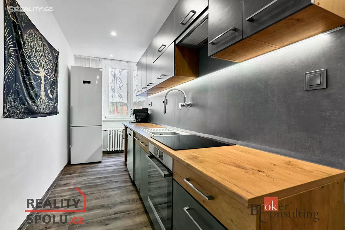 Nabízíme k prodeji krásný a kompletně zrekonstruovaný byt 3+1 o výměře 68 m², který se nachází ve 5. nadzemním podlaží domu na adrese náměstí 9. května v Chodově. Byt prošel kvalitní rekonstrukcí, má zděné jádro, novou elektřinu v mědi a plastová okna vybavená sítěmi proti hmyzu. Dům je celkově zrekonstruovaný, zateplený a disponuje prostorným revitalizovaným výtahem, což zajišťuje pohodlné bydlení. Zádveří bytu je vybavené vestavěnou skříní, šatním věšákem a botníkem, takže poskytuje dostatek úložného prostoru hned u vstupu. Kuchyň nabízí kuchyňskou linku na míru včetně spotřebičů, s výjimkou lednice. Obývací pokoj je zařízený obývací stěnou a jídelním sezením, díky čemuž vytváří příjemný společný prostor. Další samostatná ložnice je vybavena prostornou skříní a má přímý vstup na zasklenou lodžii, která poskytuje klidné místo k posezení nebo odpočinku. K dispozici je také další samostatný pokoj vhodný jako dětský pokoj, pracovna či pokoj pro hosty. Koupelna je moderně upravená a vybavená sprchovým koutem a toaletou. K bytu náleží také sklepní prostor. Vybavení může po domluvě v bytě zůstat, kromě lednice a sedací soupravy. Byt se nachází v klidnější boční ulici přímo u centra města, kde je veškerá občanská vybavenost v docházkové vzdálenosti - školy, školky, obchody, lékaři, služby i volnočasové možnosti. Kousek od domu se nachází oblíbené jezero Bílá voda, sportoviště, hřiště i možnosti pro procházky či cykloturistiku. Dopravní dostupnost je výborná, ať už do Karlových Varů, kam cesta trvá přibližně 15 minut, nebo do Sokolova, který je vzdálen zhruba 10 minut. Nedaleko se nachází také autobusové a vlakové spojení. Pokud Vás nabídka zaujala, neváhejte nás kontaktovat s financováním Vám velice rádi pomůžeme.